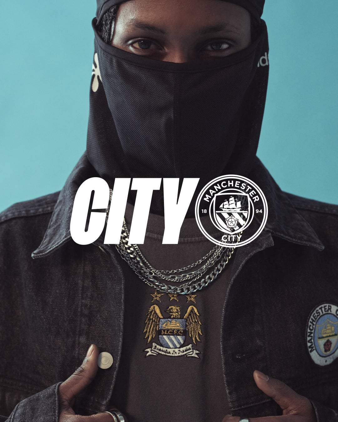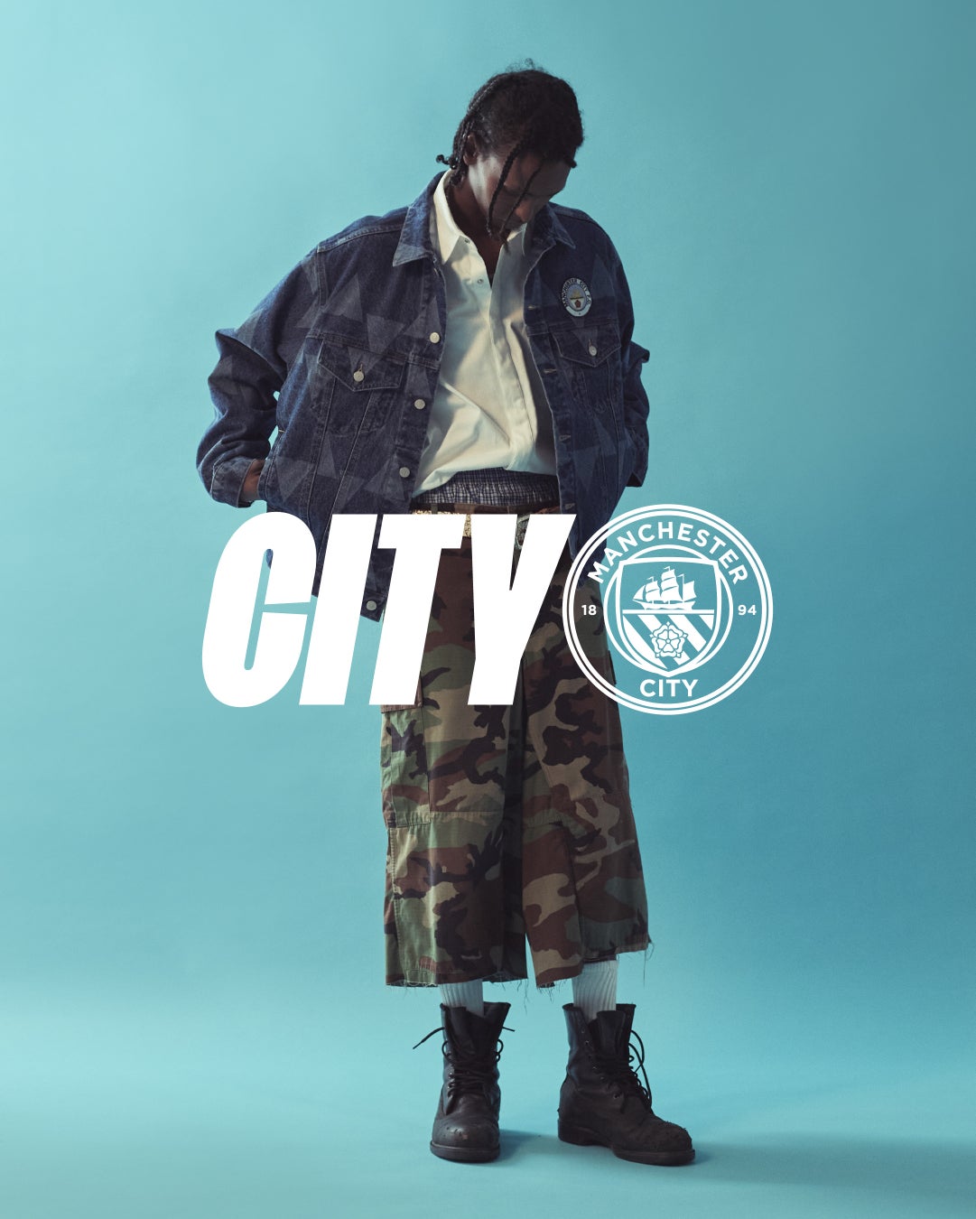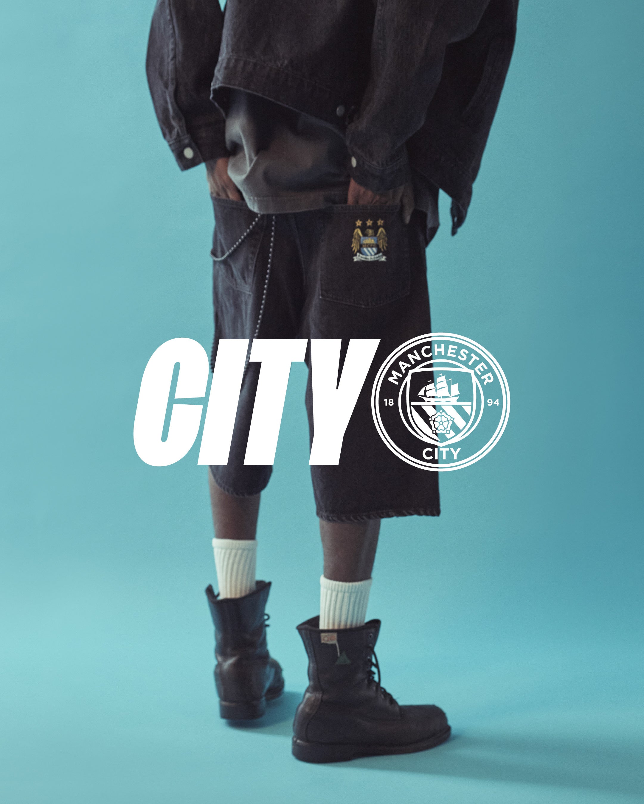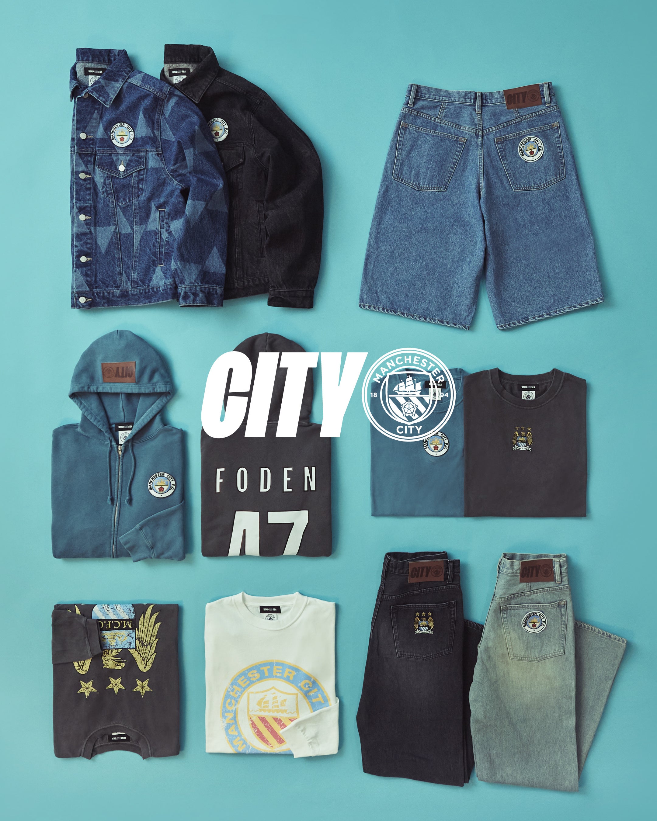 本コレクションでは、マンチェスター・シティFCのチームエンブレムをデザインとして施したデニムアイテムをメインに展開いたします。
