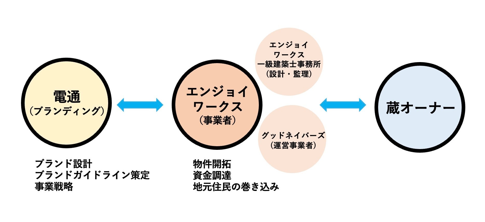 株式会社エンジョイワークス(本社:神奈川県鎌倉市、代表取締役:福田 和則、以下「エンジョイワークス」)は、株式会社電通(本社:東京都港区、社長:榑谷 典洋、以下「電通」)と空き家・遊休不動産再生の分野において、本日業務提携(以下「本提携」)しました。本提携を通じて全国の使われていない「蔵」をリノベーションし宿泊施設に変えるプロジェクトを推進することで社会課題を解決し、地方創生の実現を目指します。