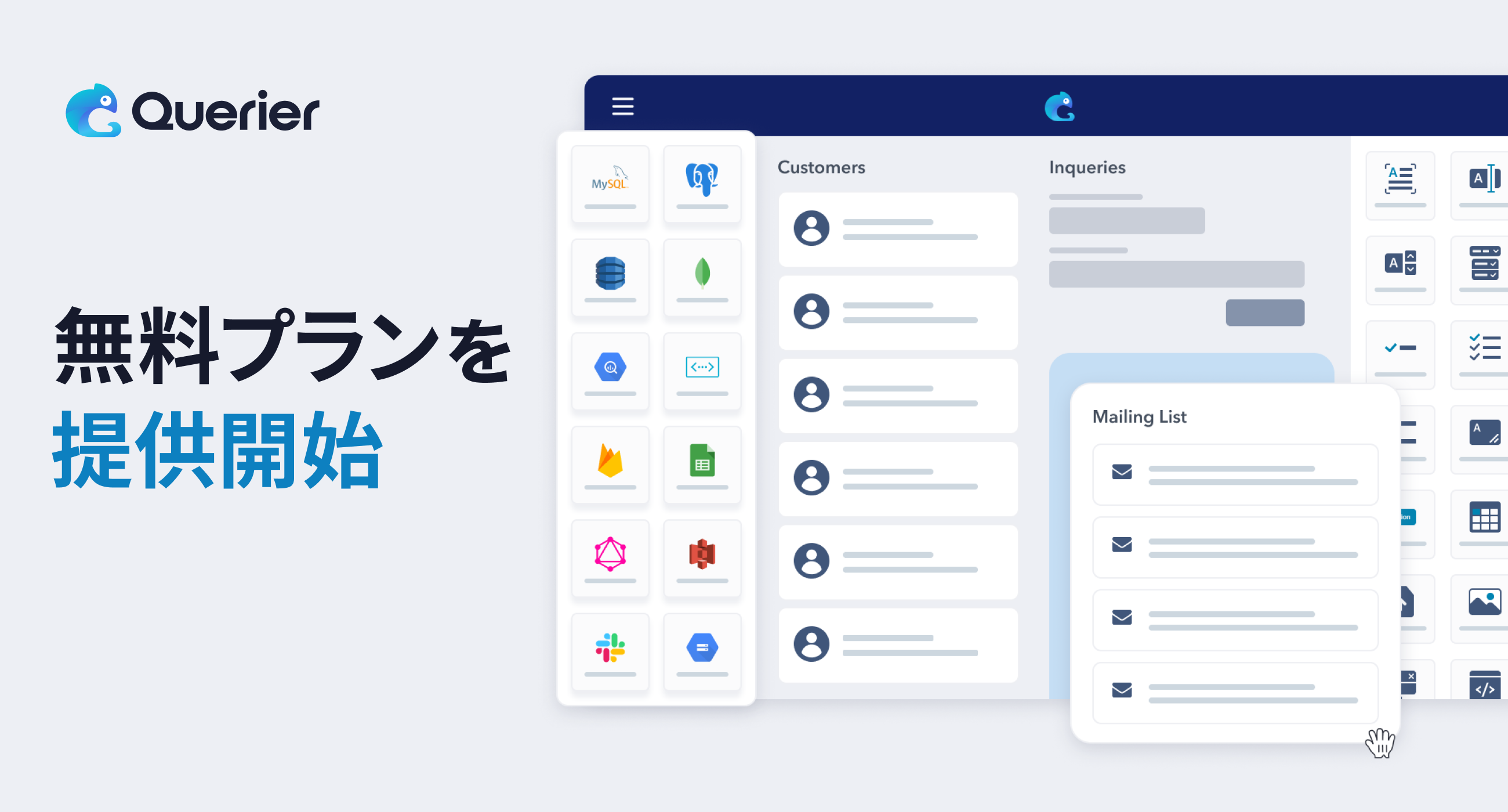 管理画面開発ローコードSaaS『クエリア』が無料プランの提供を開始