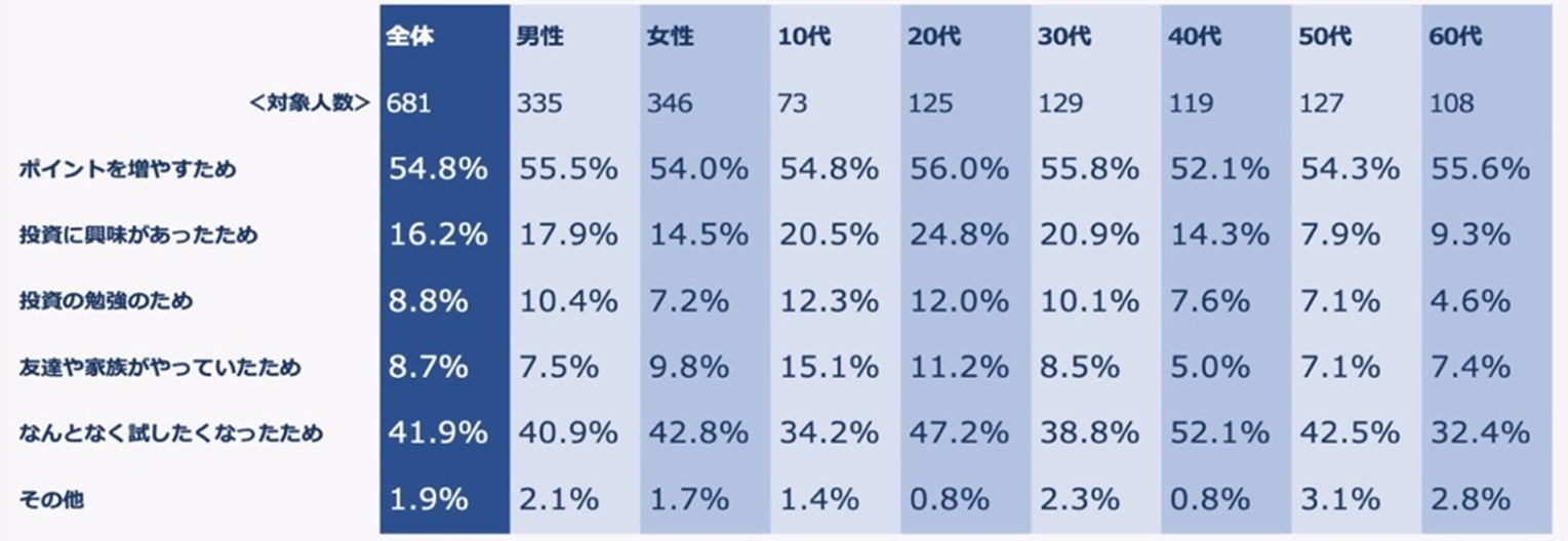 そのポイント運用が「投資」デビューの入り口の一助になっていることがわかりました。