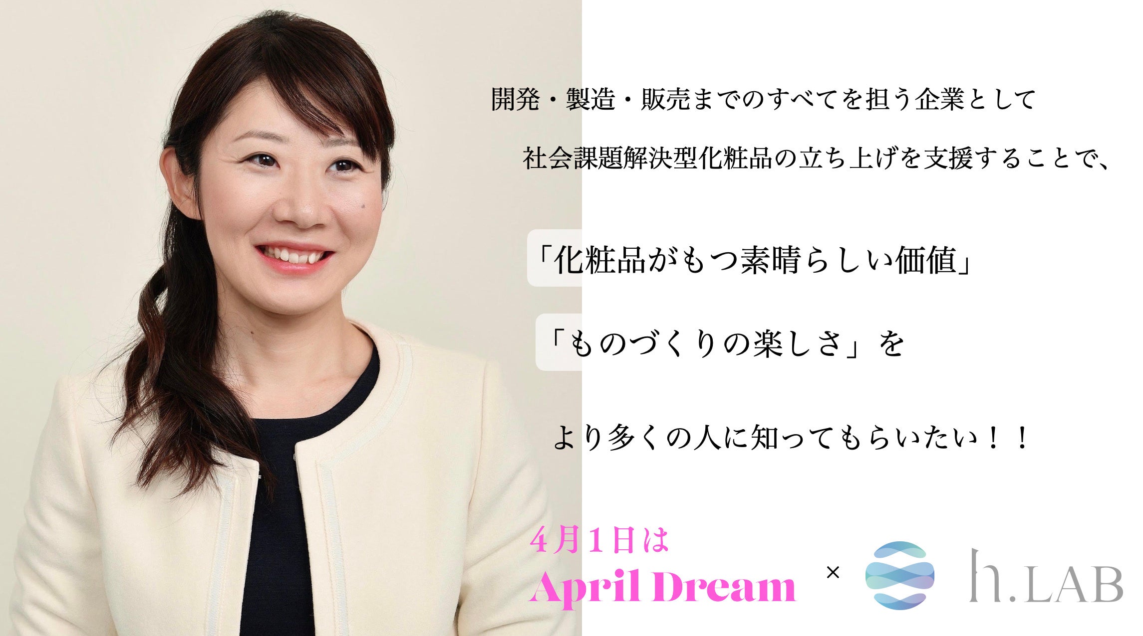 当社は、4月1日を夢を発信する日にしようとするApril Dreamに賛同しています。このプレスリリースは「h.LAB」の夢です。