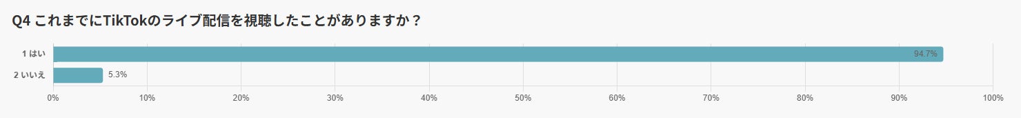 「これまでにTikTokのライブ配信を視聴したことがありますか?」という設問に対し、「はい」と答えた人は、TikTok Shopを認知している94人のうち94.7%にのぼりました。