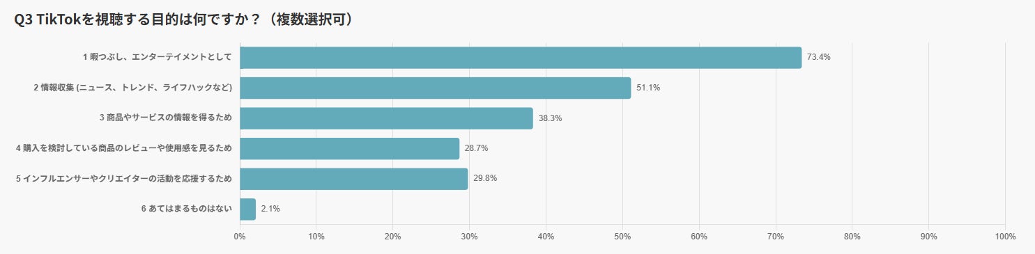 これらの結果から、TikTokは娯楽コンテンツを楽しむ場であると同時に、ユーザーの購買判断にも関わるプラットフォームであることがわかります。