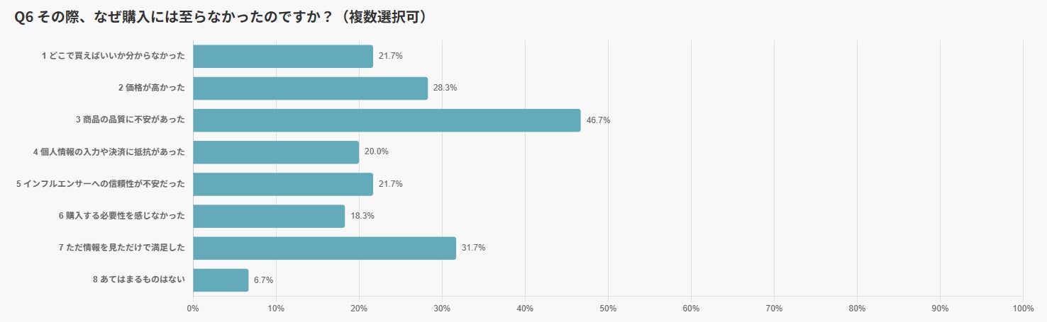 続いて「ただ情報を見ただけで満足した」「価格が高かった」「どこで買えばいいか分からなかった」などが挙げられました。
