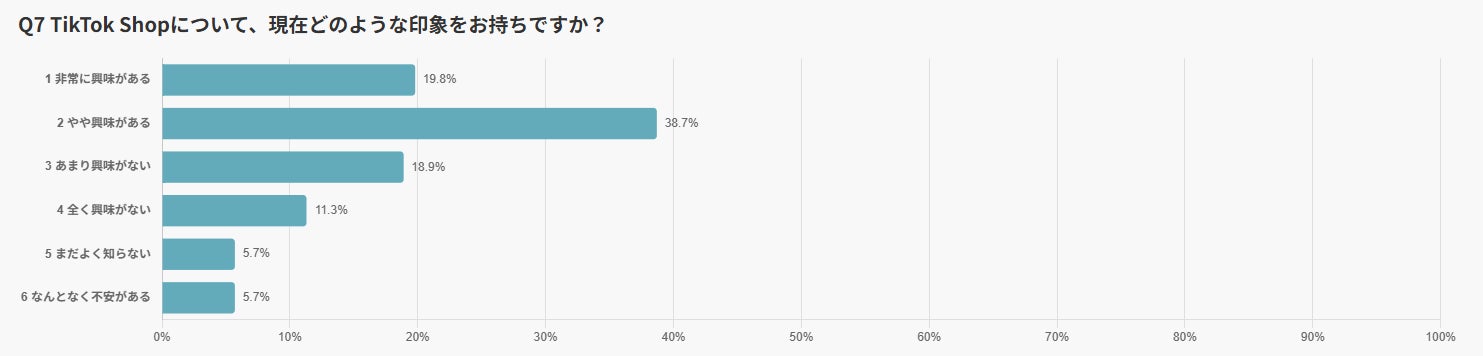 つまり、TikTok Shopに対する第一印象には、「まだ判断できない」という保留層と、「期待はあるが様子見したい」という慎重な関心層が混在しています。