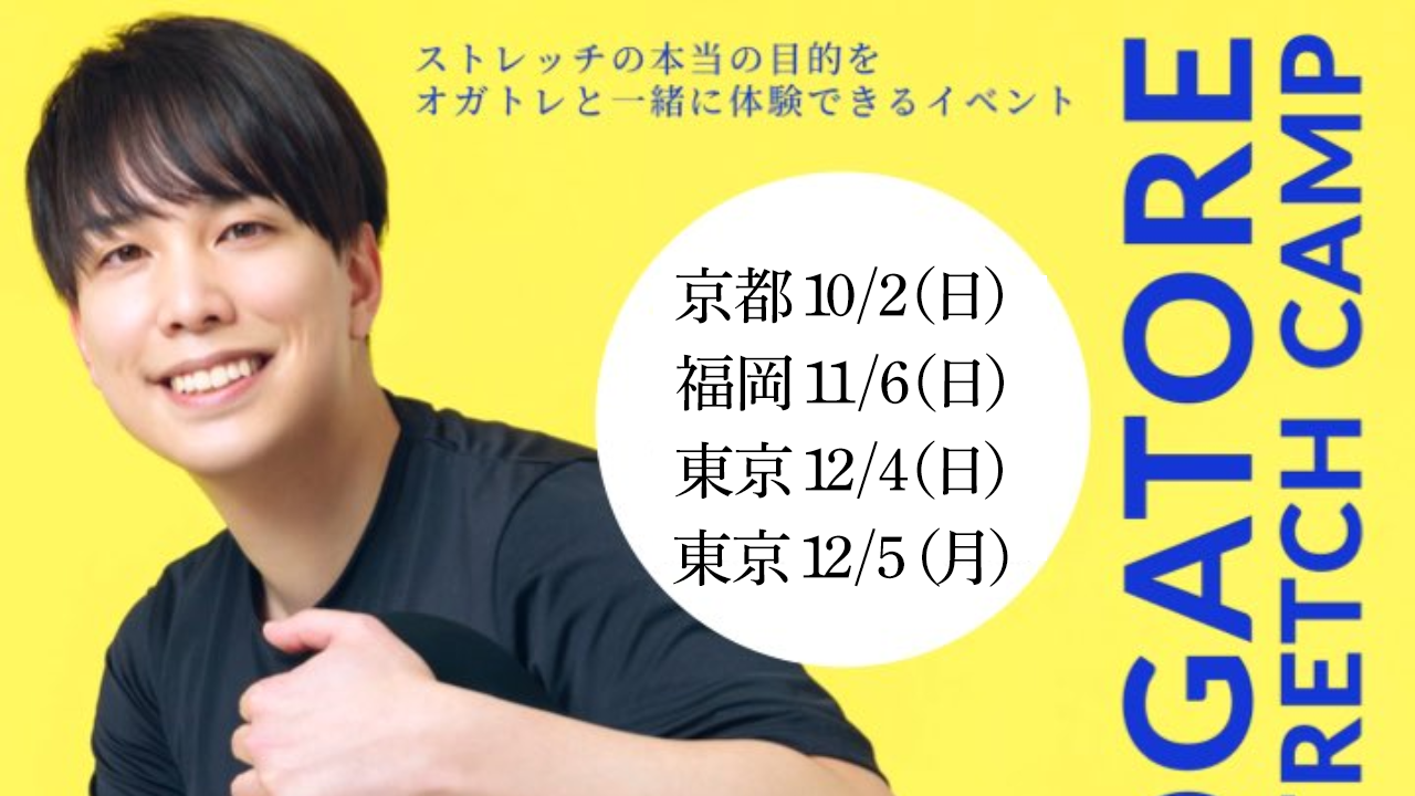 【第2弾】京都・福岡・東京会場が実施決定!「オガトレ」が少人数制ストレッチイベントを全国開催します!登録者数100万人超の理学療法士YouTuber