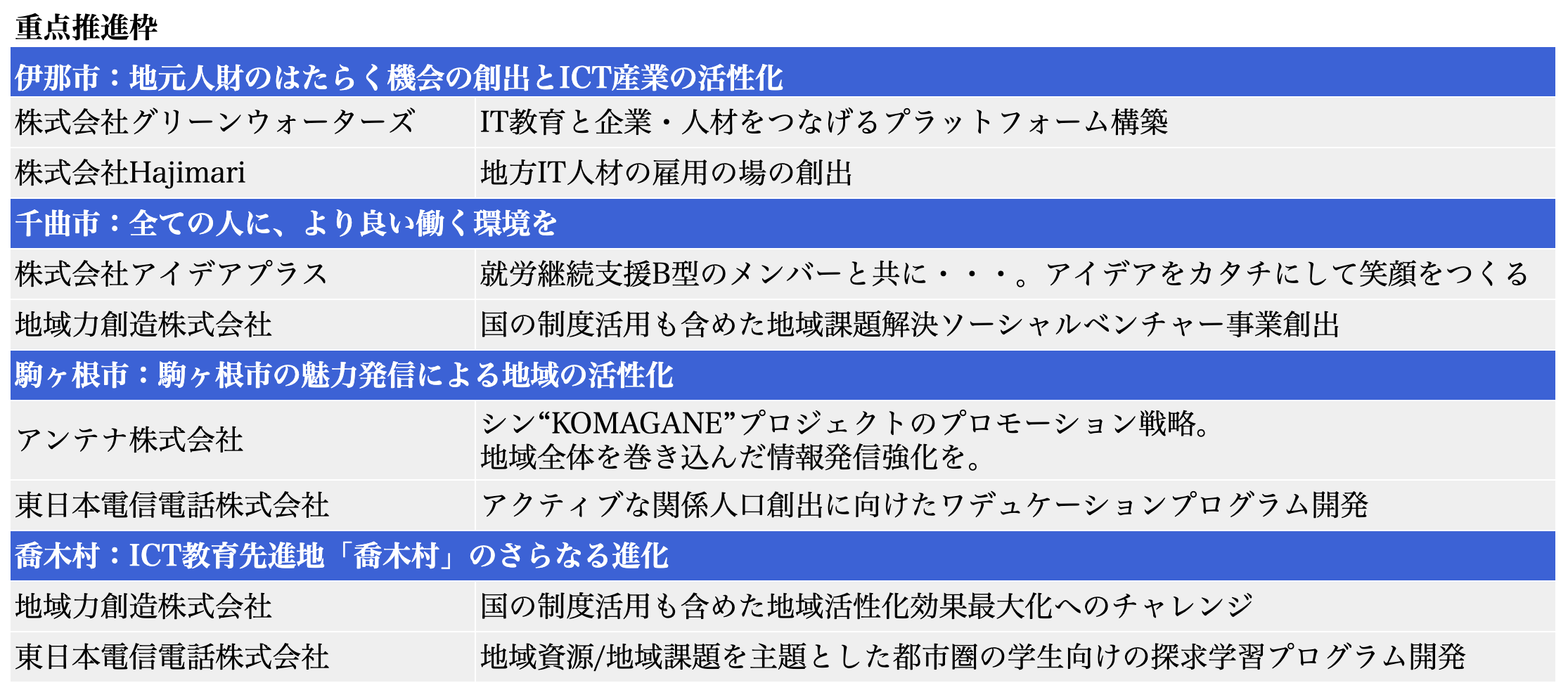 ・参加対象:全国の市町村、長野県内・県外企業等