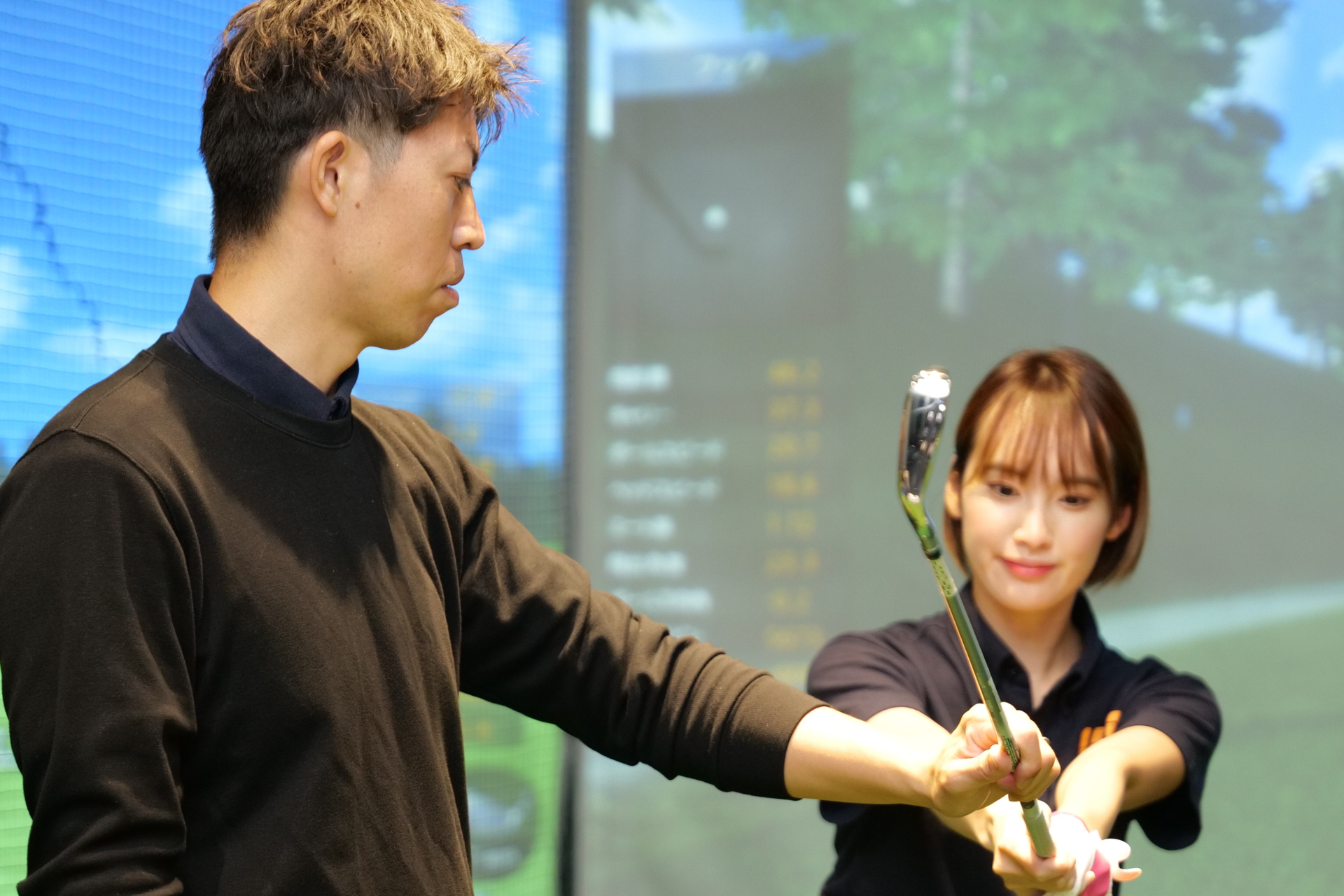 また、シミュレーションゴルフのメリットを得ながら、さらに上達効率を上げるため、100GIRI GOLFではレッスンプロ1人につき最大5名のプロのワンポイントアドバイス制を採用しています。