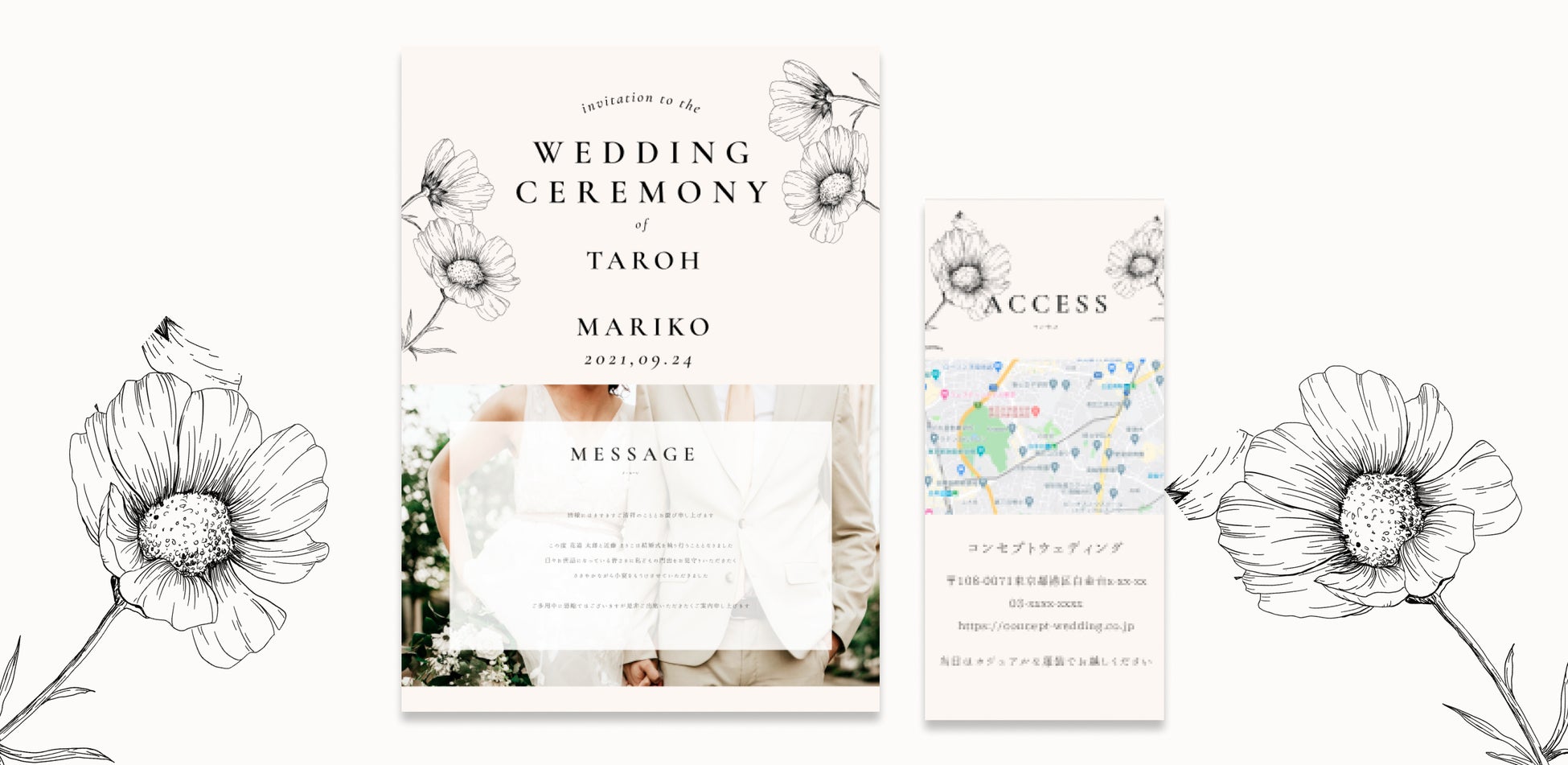 手書きの花があしらわれた、どのような挙式スタイルにもご利用いただけるデザイン