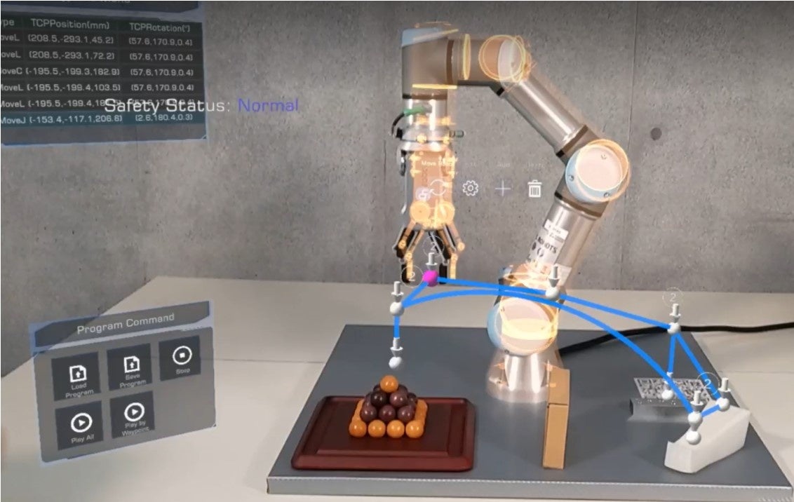 ・目の前の空間に3D表示されるロボットの動作予定軌跡を常に確認しながら、安全に作業が可能です。