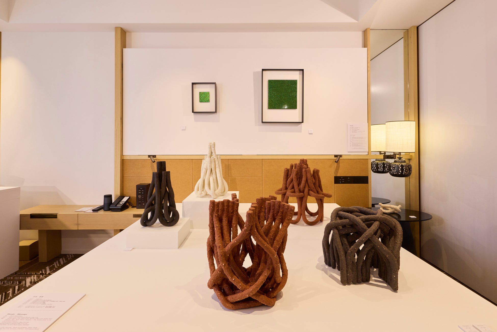 フェア会場では、より暮らしに近い空間の中で作品をご覧いただけるよう、ホテルの客室で展示をしています。1部屋1ギャラリーでの展示のため、部屋を変わるごとに異なる世界観の作品に出合えます。