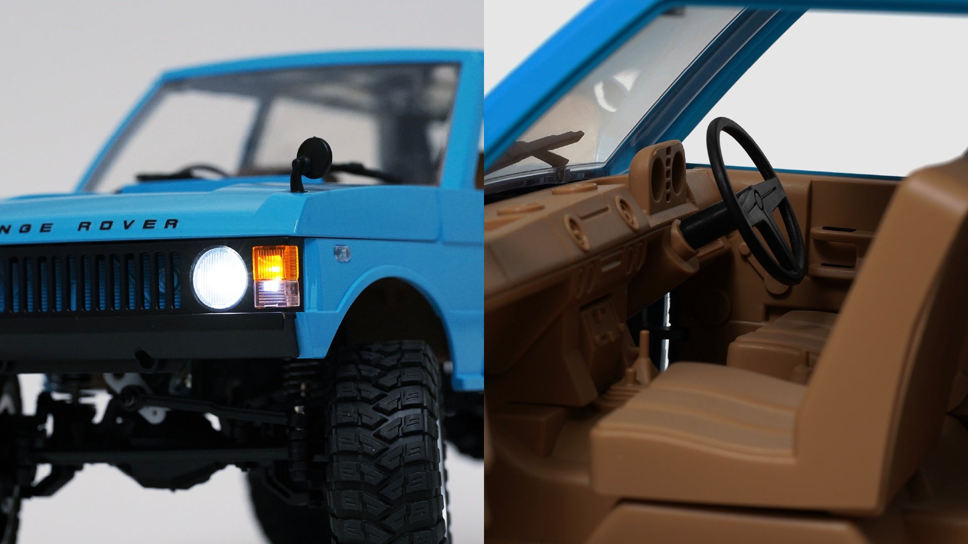 今回の第2弾モデルではランドローバー社が1970年代にリリースしていた初代レンジローバーを、プロポーションからディテールまで忠実に再現してRC化。フロントグリルやヘッドライトと言った外装はもちろんのこと、内装部のメーターやスイッチなども精巧に作られており本物さながら。しかも、箱出しですぐに遊べる完成済みのRTRモデルでありながら、実車さながらのシャシー構成とサスペンション機構でリアルな走りを楽しむことができる。密かに話題を集めているヤングタイマー車の中でも人気の高いレンジローバーだけに、RC好きを筆頭に大きな注目を集めること間違いナシ。