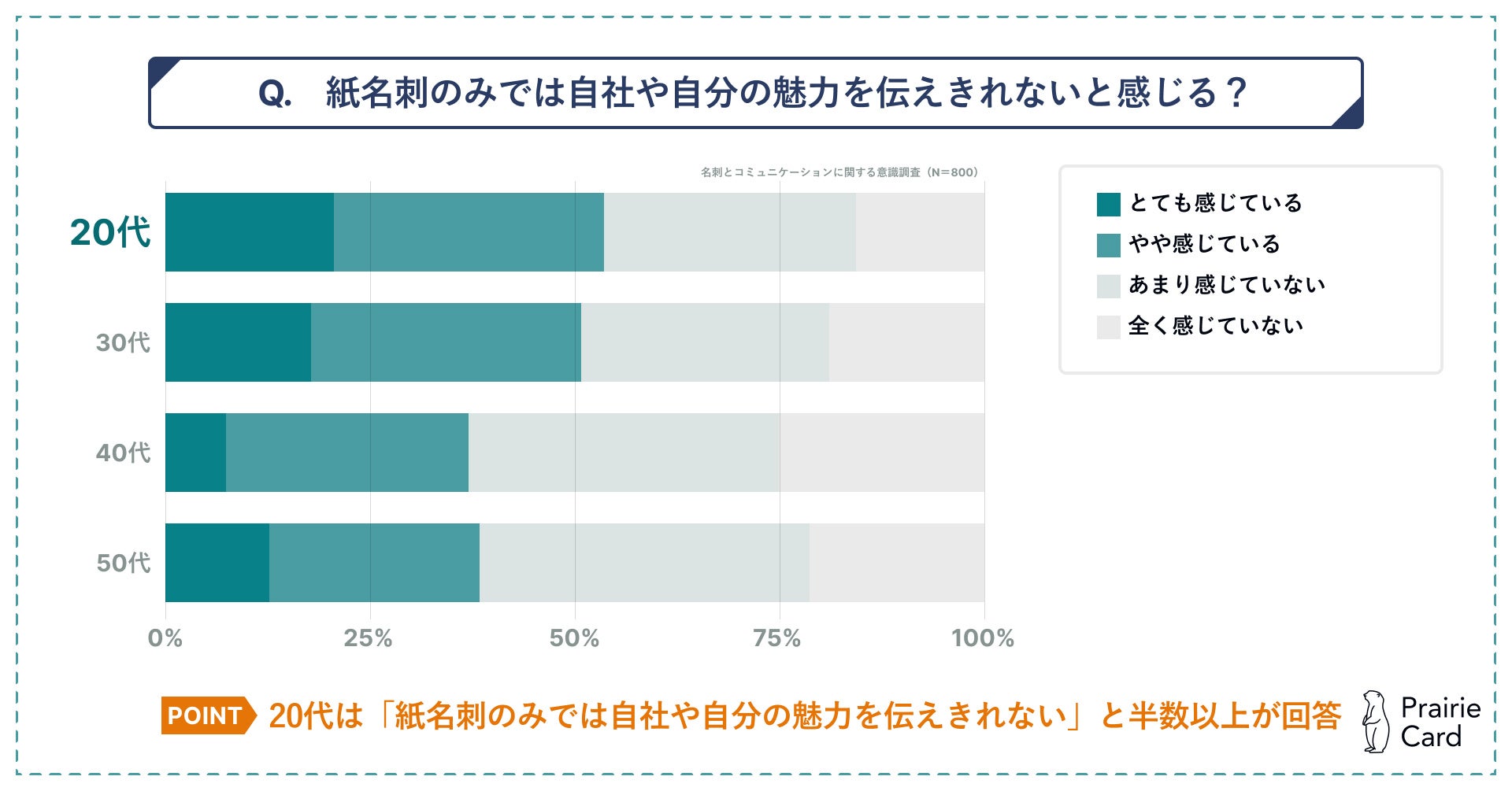 20代は、紙名刺のみでは自社や自分の魅力を伝えきれないと半数以上が回答
