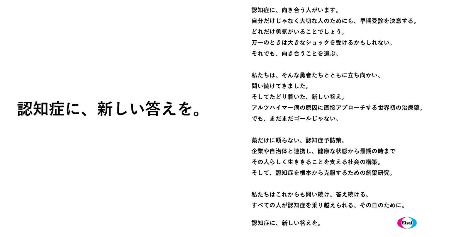 「認知症に、新しい答えを。」エーザイを知っていただくためのキャンペーンを始動
