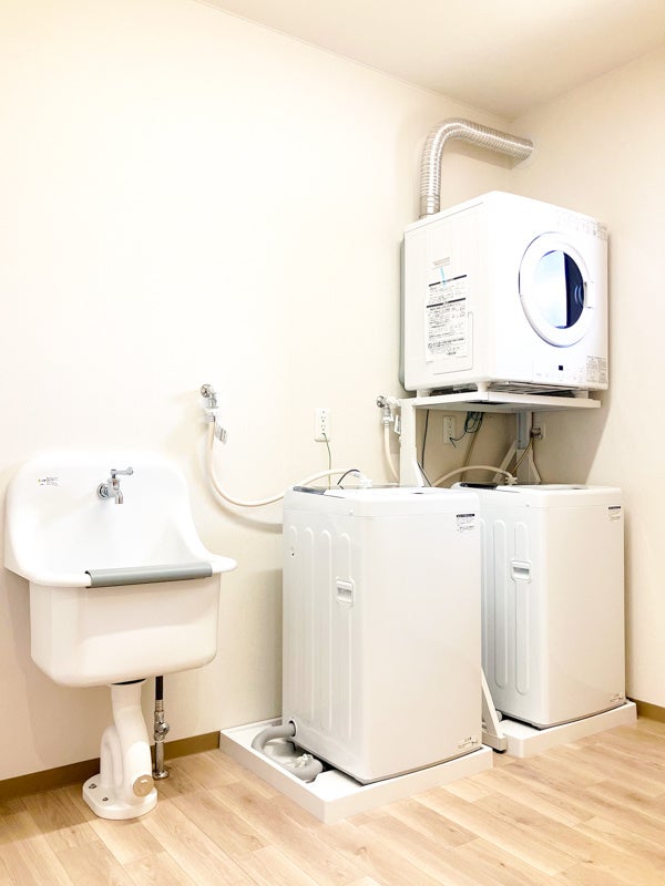 各階にはトイレが2つずつあり、業務用ガス、洗濯機、乾燥機、浴室を各階にそれぞれ設置し、