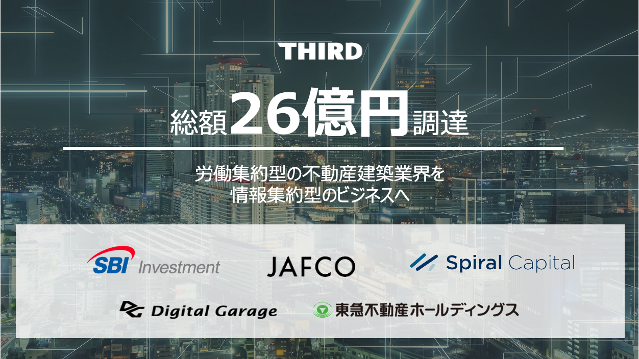 AI建物管理クラウドシステムを提供するTHIRD、ジャフコ グループ株式会社をリード投資家とし26億円のシリーズB 資金調達を実施