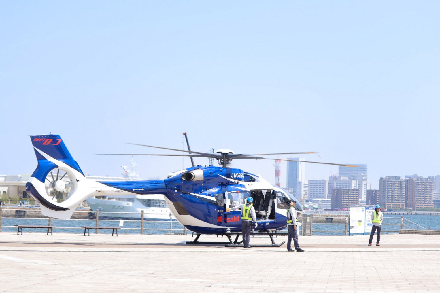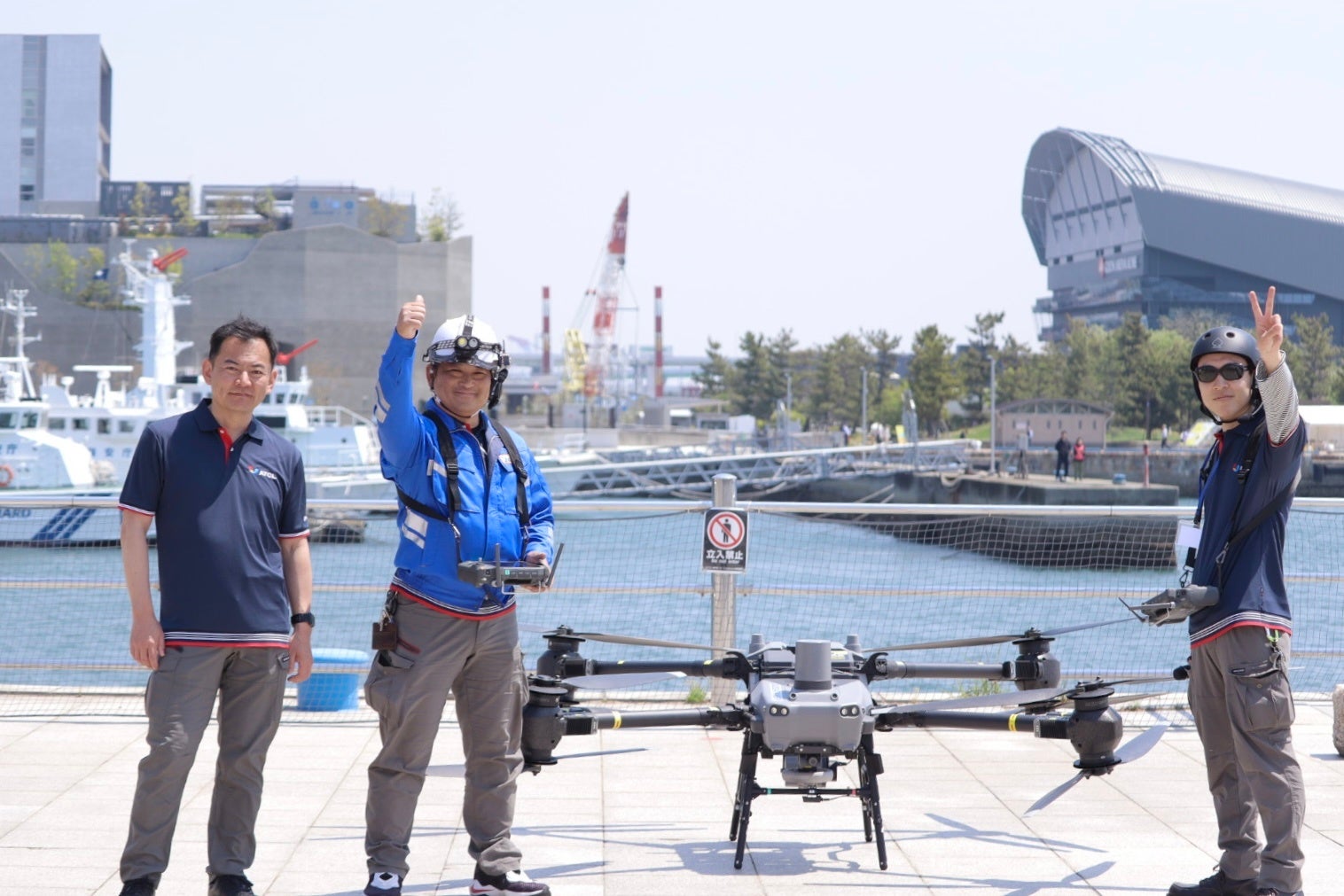 メリケンパーク会場内では【陸・海・空】をテーマにした防災モビリティ展示を行い、各分野の最先端技術を紹介。その中でも特に注目を集めたのが「空」分野の展示として実施した物資輸送用ドローン「Fly Cart30」による飛行デモンストレーションです。