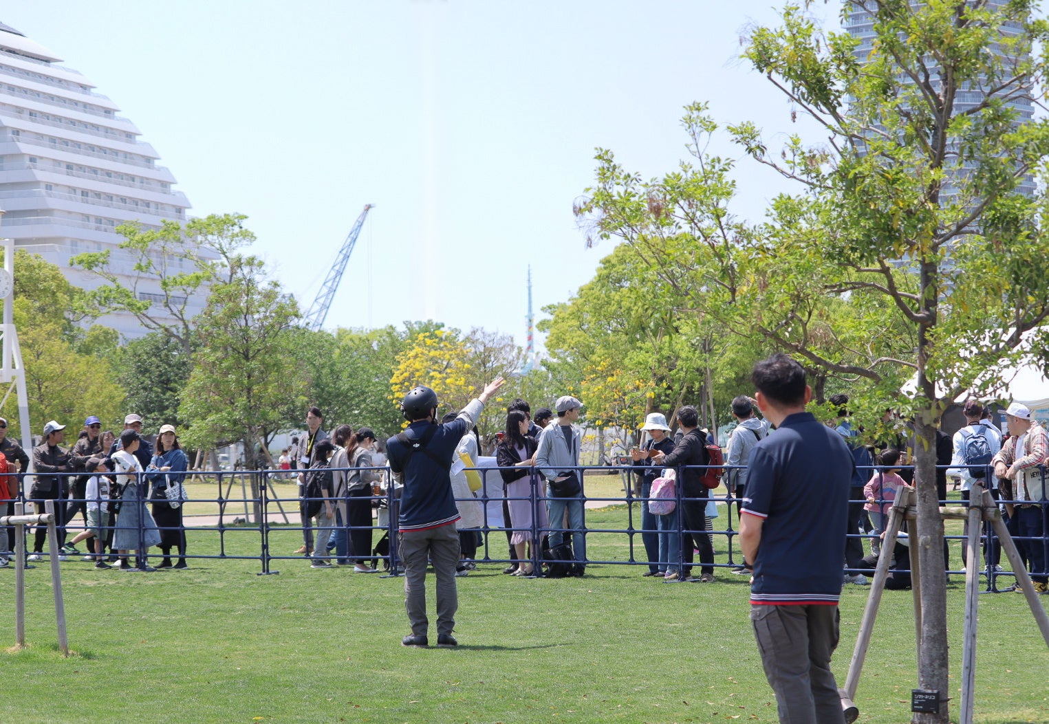FlyCart30が神戸メリケンパーク上空を安定した飛行で滑空し、チロルチョコとミネラルウォーターを搭載して輸送。物資がドローンによって届けられる様子を目の当たりにした来場者からは、「近未来的なドローンが目の前で見られることにびっくりした!」「これほど大きいドローンがあるとは知らなかった」など歓声と驚きの声があがるほどの盛況ぶりを見せました。