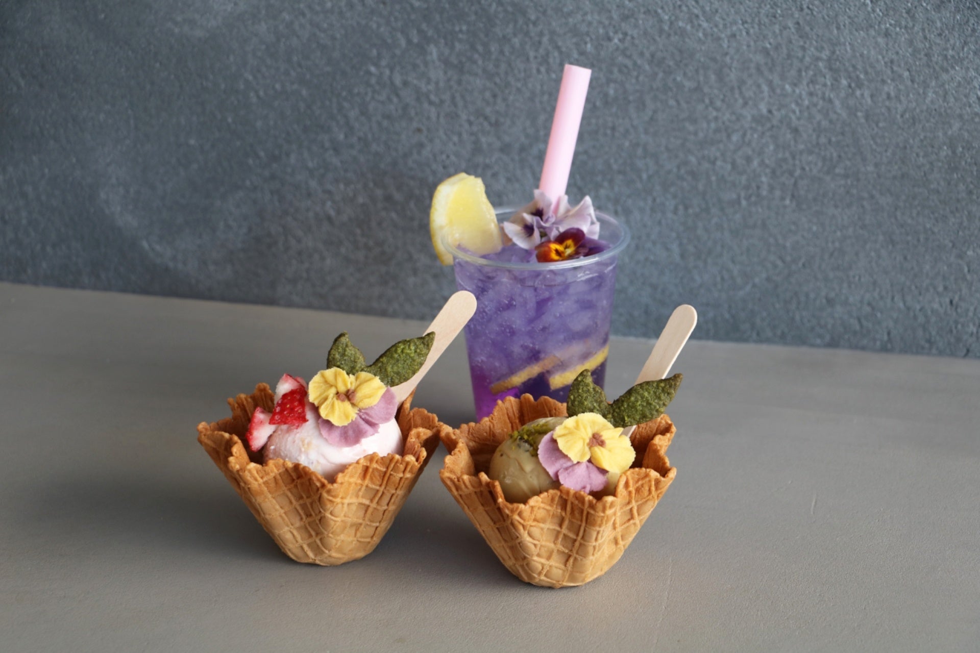華やかな施設内では、限定スイーツやグルメが登場!さらにワークショップやビオラ柄やビオラカラーのグッズや食器なども限定販売され、イベントを盛り上げます。