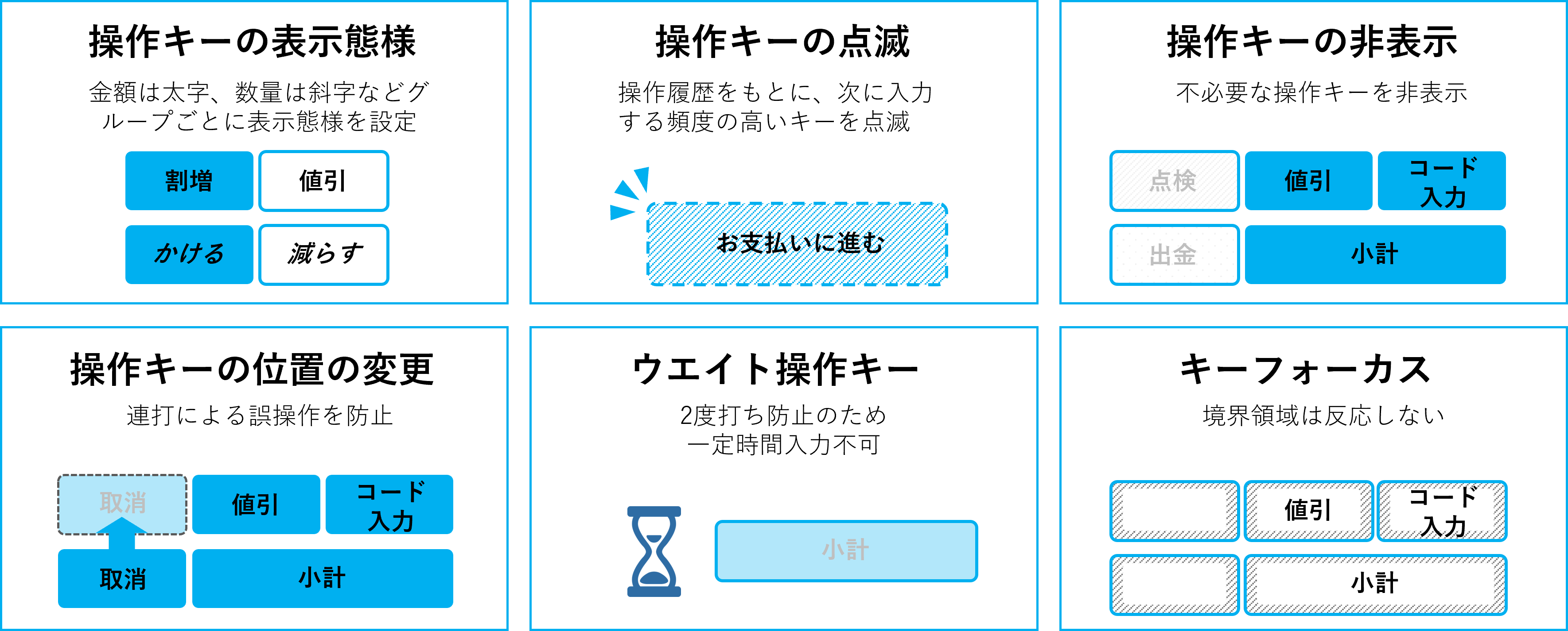 ・概要:不要な操作キーの非表示や、操作キーの反応領域の調整などから誤操作を抑制する仕組み