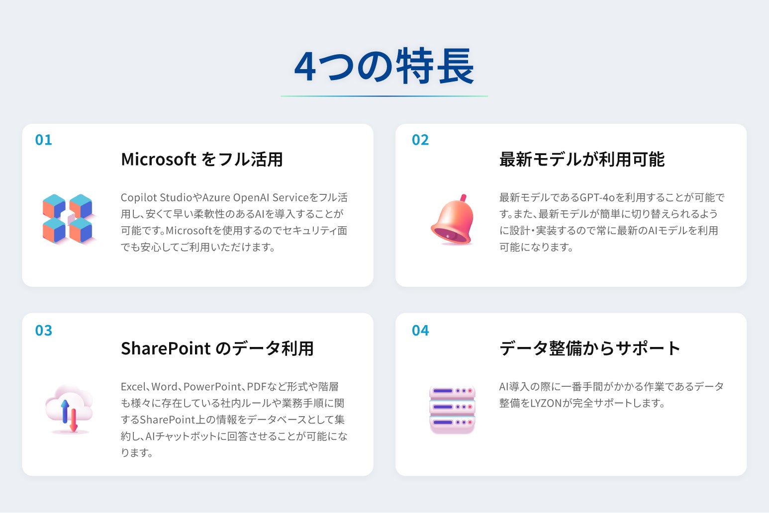 また、Microsoft Copilot Studioの機能を最大限に活用することで、利用しやすいコストと短期間でのAI導入を可能にしています。