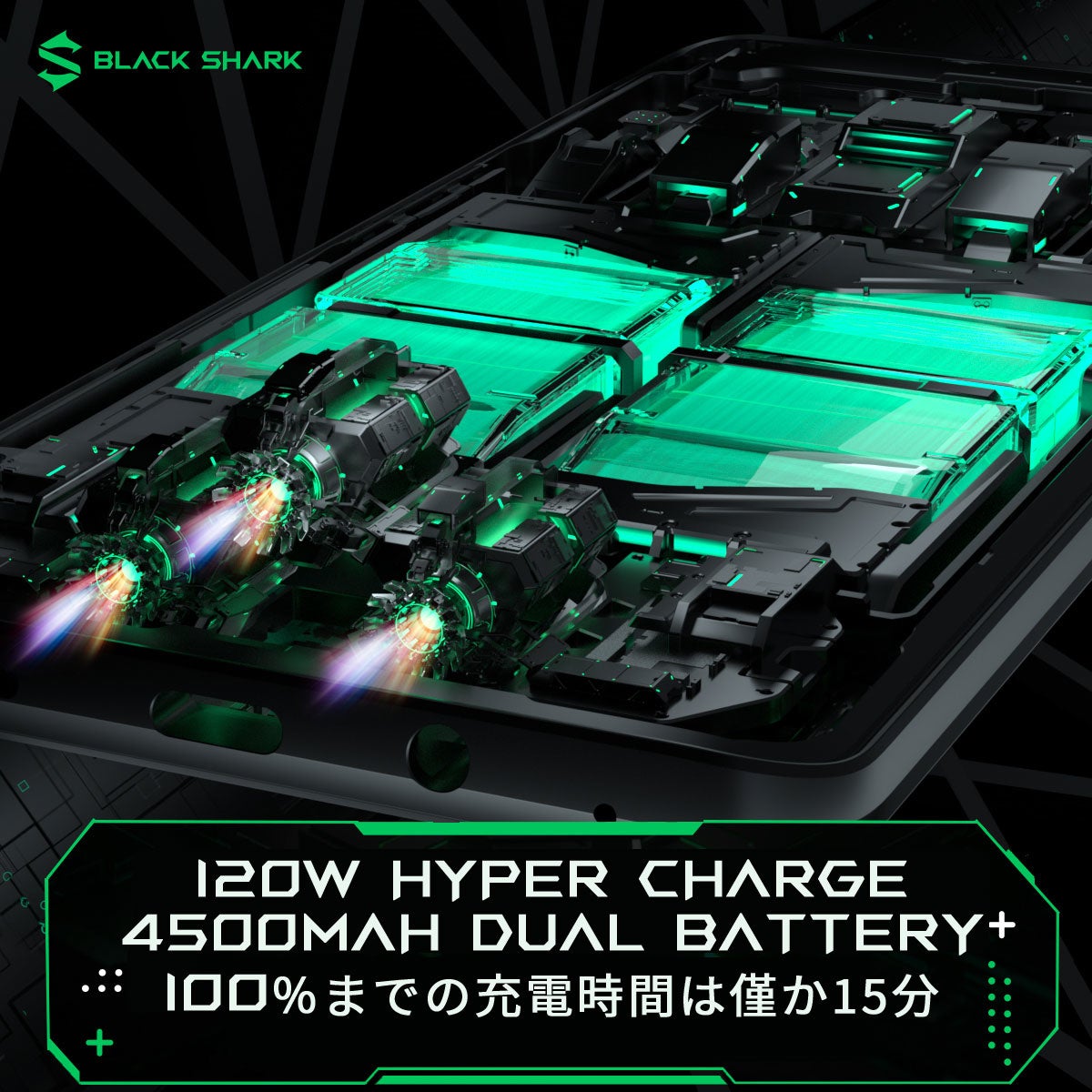 Black Shark 4 Proは超大容量4500mAhのダブルセルバッテリーにeSportsテクノロジーを搭載した大容量バッテリーで、1日中ゲームやエンターテイメントを楽しむことが出来ます。充電は急速充電120Wまでの充電機能を備えており、100%までの充電時間は僅か15分です。