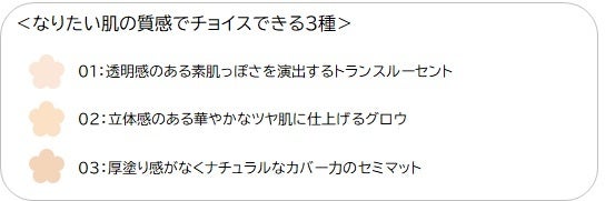 なりたい肌の質感でチョイスできる3色