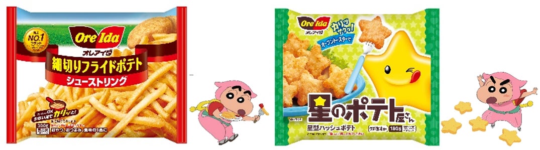 「オレアイダ」は1951年に米国で創業し、冷凍野菜の製造販売を開始。日本では1984年に上陸して以来、家庭で手軽に揚げたてのフライドポテトが楽しめる冷凍ポテトのナンバー1ブランドとして長らく愛されております。一方クレヨンしんちゃんも、22年で作品30周年を迎え、世界中から長く愛され続けている大人気キャラクターとなります。
