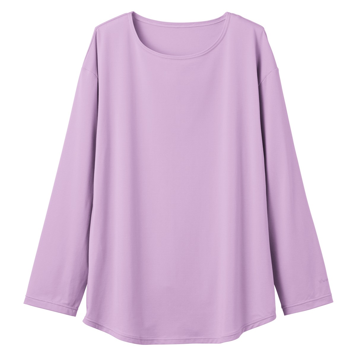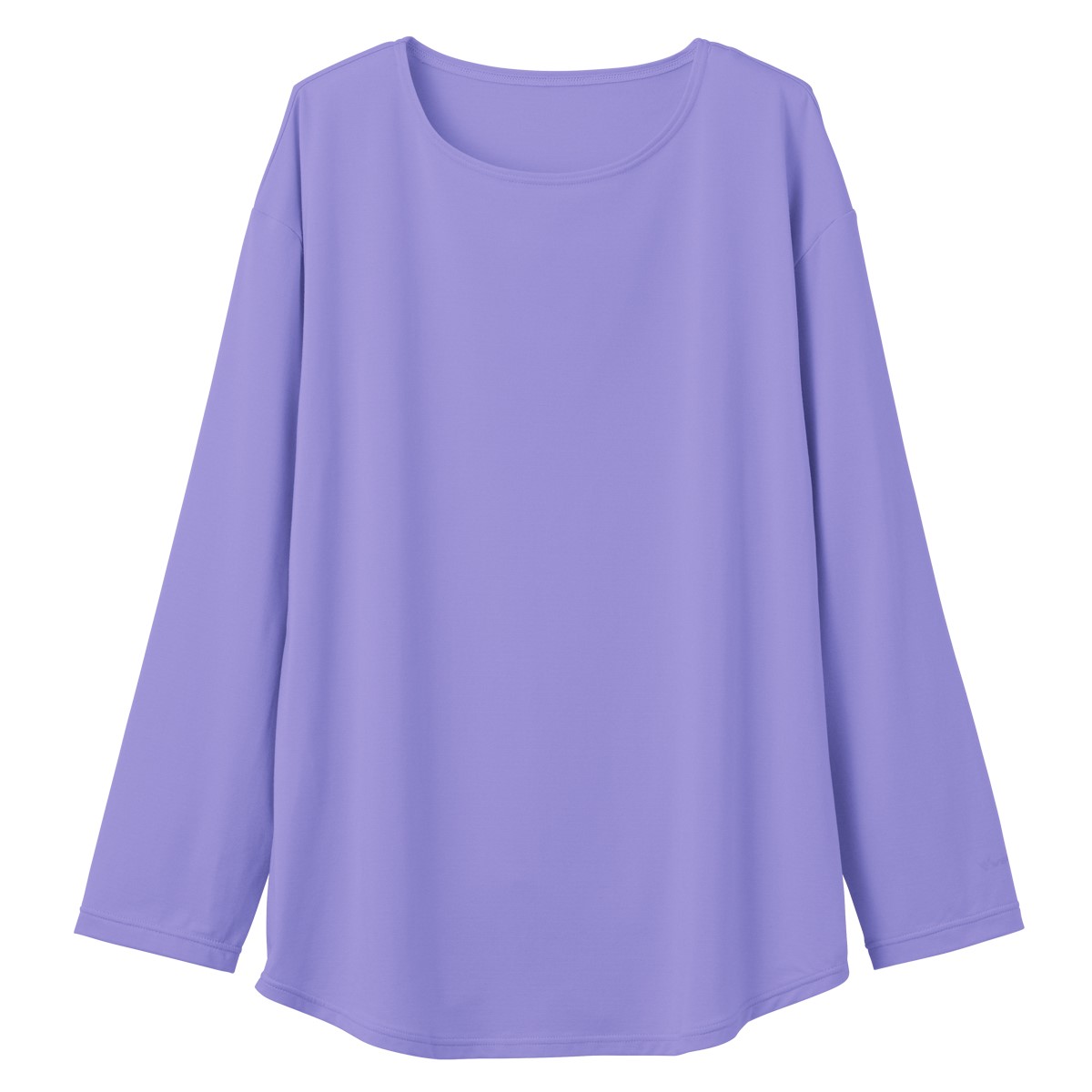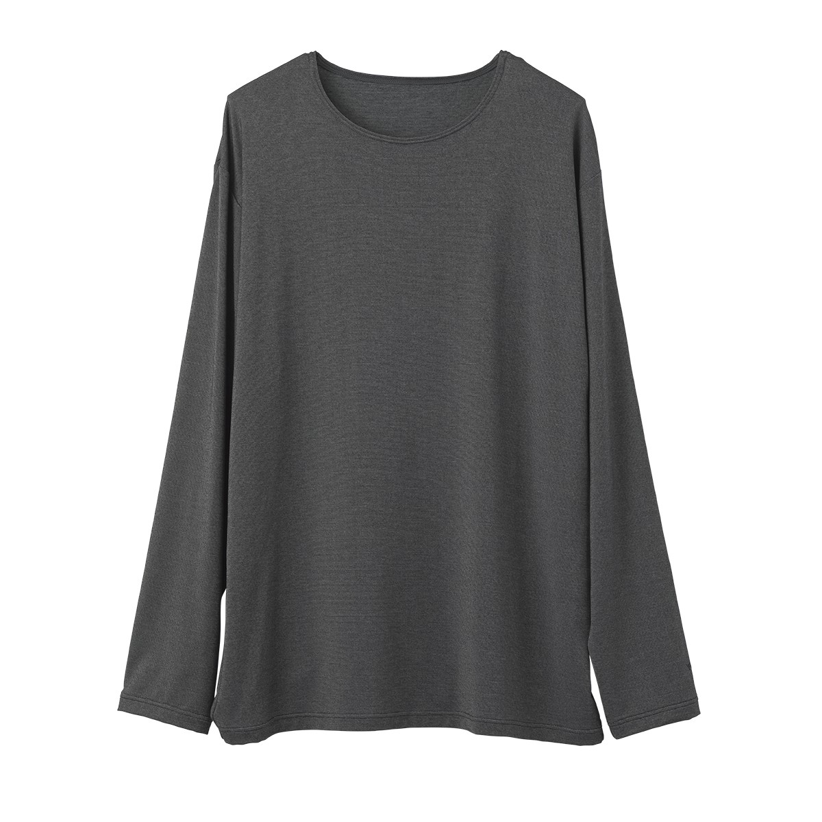 『COMFORT W』はこれまで生地の編立から縫製までをタイで生産していましたが、2021年秋冬からすべて日本生産へと切り替え、生地の重さを調節し、よりキレイなシルエットを実現するよう追求しました。植物由来の再生繊維「セルロース」を使用することで、シルクのような光沢感となめらかなドレープ性が生まれ、体のラインをカバーし、美しいシルエットで快適に過ごせます。毛羽を落とす加工を施すことで現れるハリのあるなめらかさが、上品でラグジュアリーな印象を生み出します。