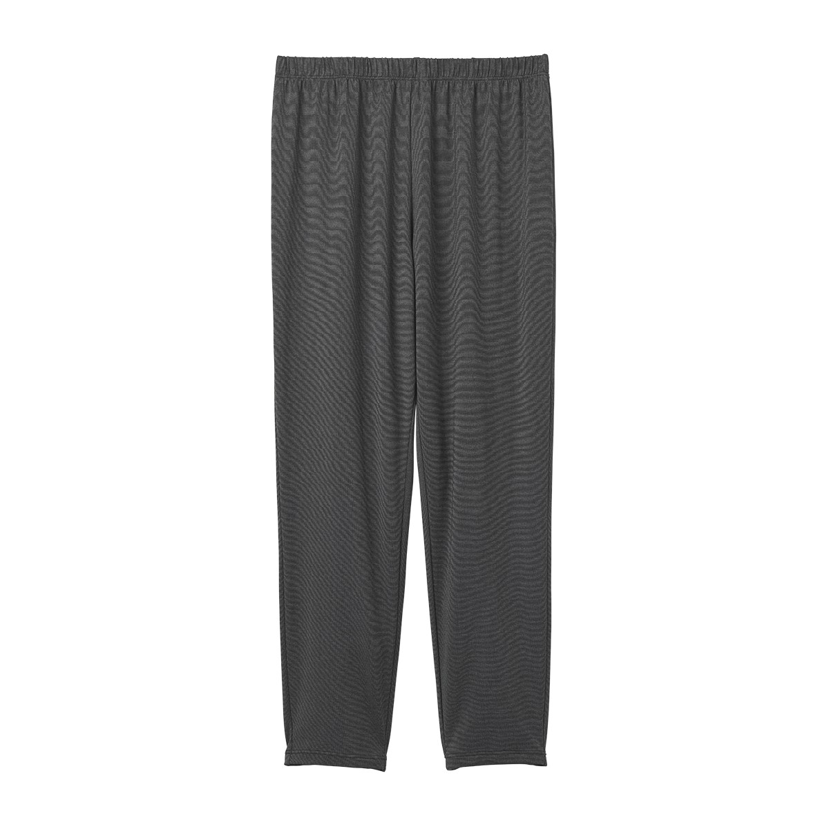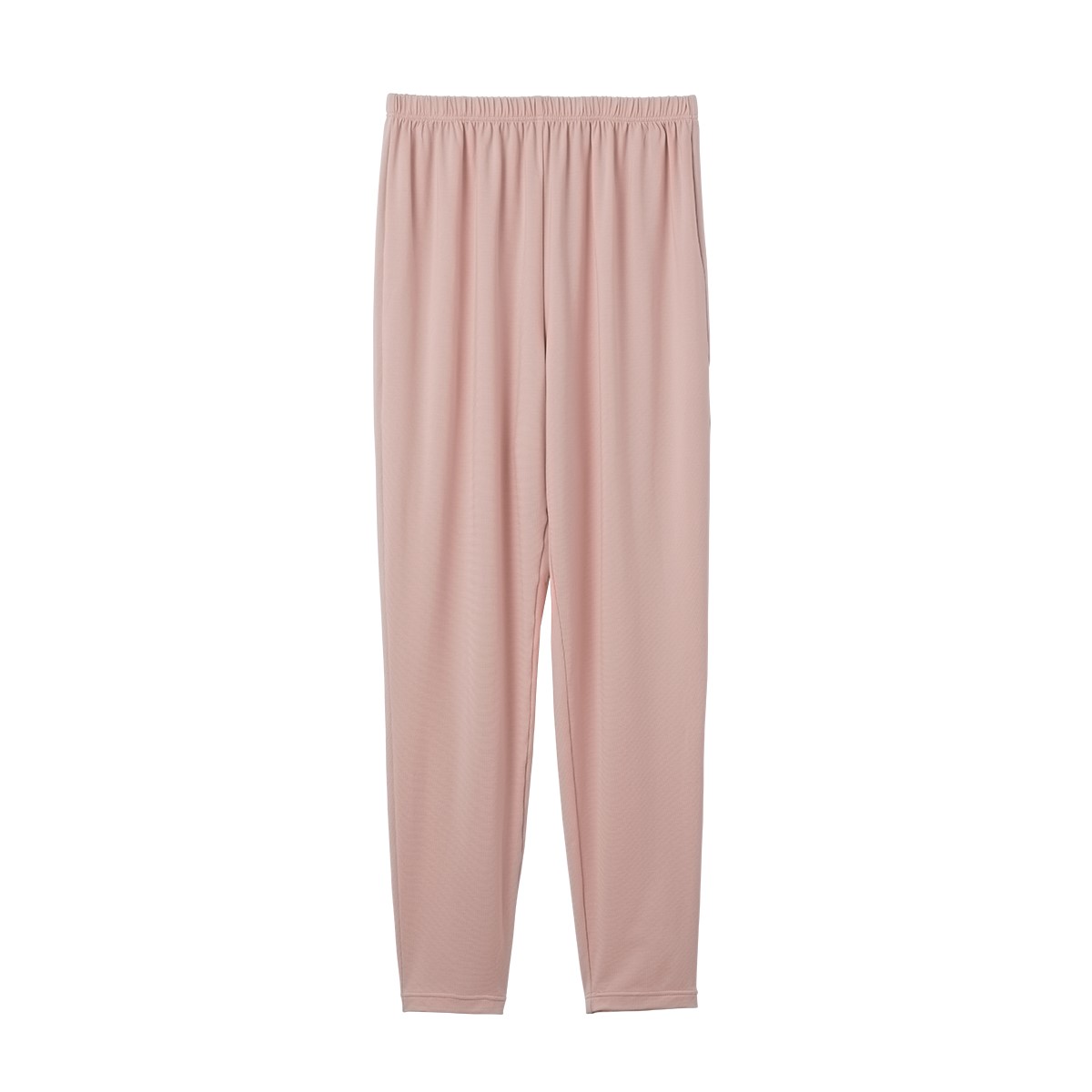 メンズ、レディースともに、セットアップのボトムスはお客様の声を反映し、腰まわりともも部分を広くし、履きこみ口をゆったりとさせた、しゃがんだ時にストレスがかからない作りに。裾口はより美しく見えるようすっきりシルエットのテーパードパンツに仕上げました。レディースのワンピースはドロップショルダーを採用したAラインのシルエットで体を締め付けず動きやすく。裾は足さばきの良いシャツテイルにすることで、レギンスとの相性も良く、季節によってコーディネートも楽しめます。