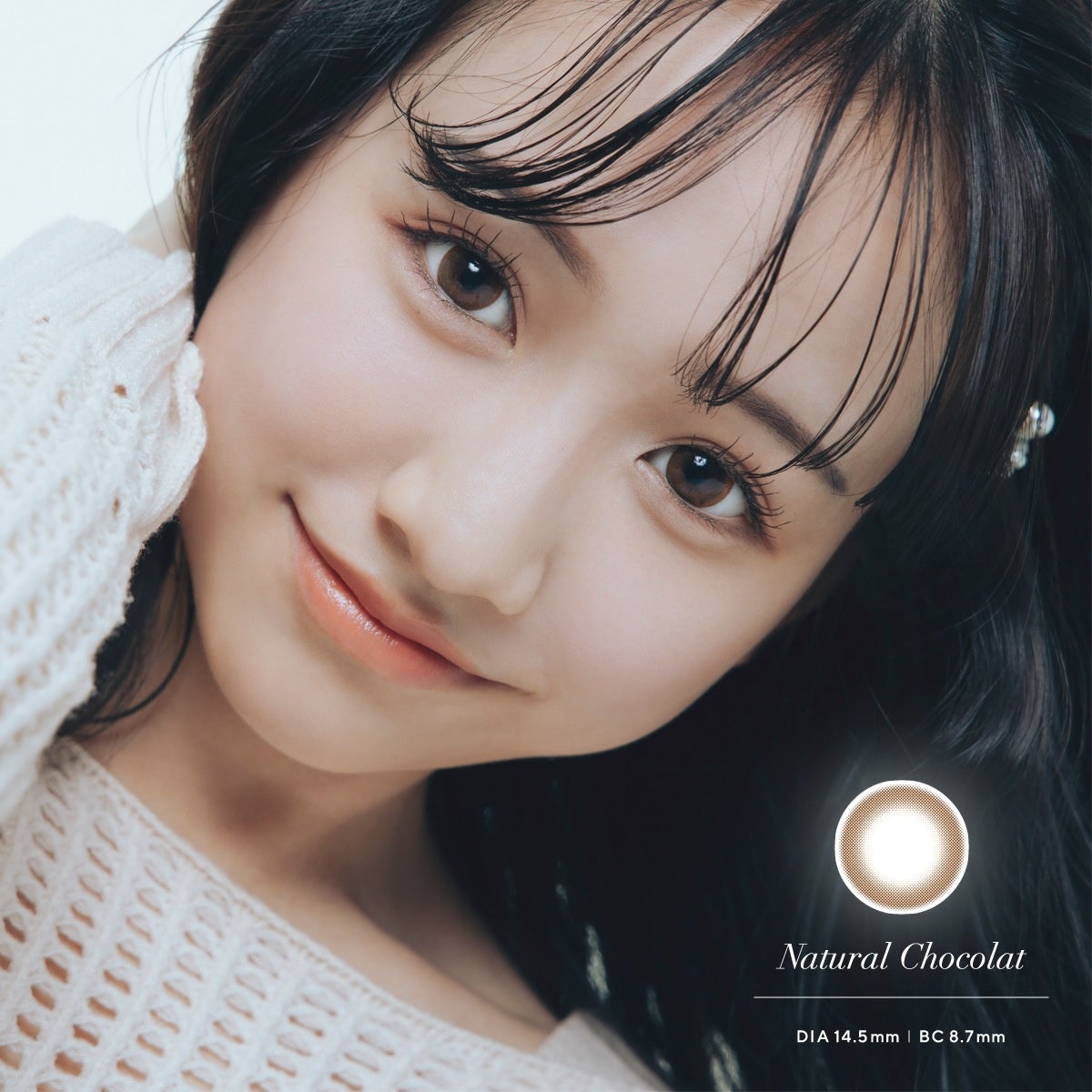 フチが無く、柔らかいブラウンのシンプルな1トーンカラー。3色の中では最も瞳に馴染みやすく、瞳の色の印象もふんわりと変えながら形も大きく印象的にみせてくれます。カラコン初心者の方もトライしやすいカラーとなっています。