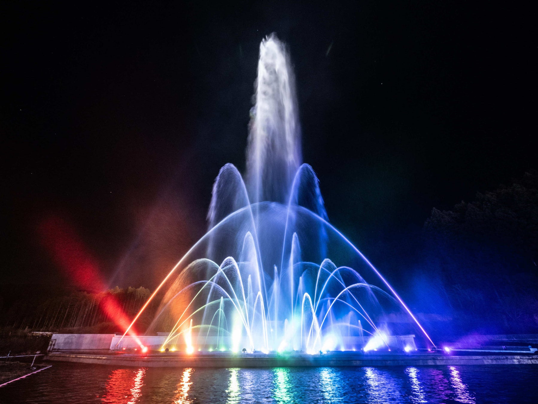 最高到達点150m、日本一の高さを誇る噴水レーザーショー。漆黒の闇を華麗に彩るレーザーの光、それに呼応する噴水の動きはパワフルでエレガント。また、10月〜12月の土曜日の一部公演にて噴水ショーと世界的振付師「SHOJIN」氏プロデュースのダンスショーのコラボレーションを開催いたします。水と光と音、三位一体のパフォーマンスをお楽しみください。