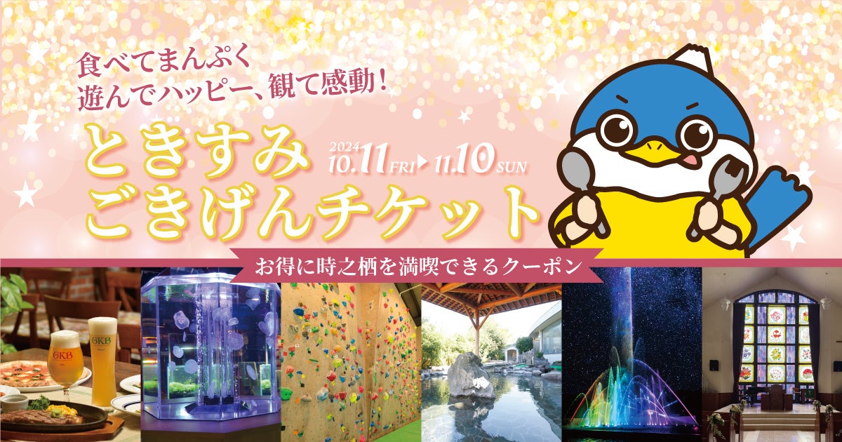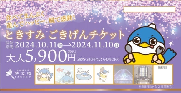 宿泊施設やレストラン、温浴施設を有する複合レジャー施設、株式会社時之栖(静岡県御殿場市神山、代表取締役:庄司政史)は、御殿場高原 時之栖にて、2024年10月11日(金)から11月10日(日)まで、園内をお得に満喫できるクーポン「ときすみごきげんチケット」を、時之栖園内各所、その他各種チケット販売サイトにて、約1ヵ月だけの期間限定で販売いたします。