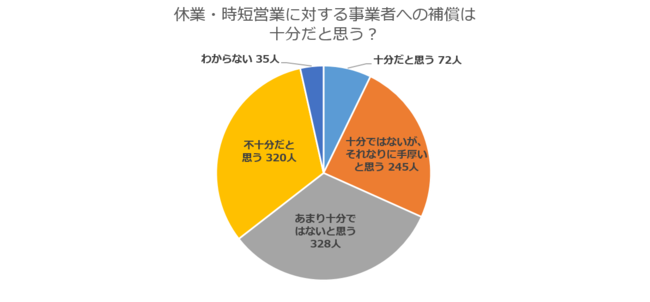 ~「効果あった」4割超、一方で身近な店舗の廃業や倒産を「知っている」8割弱、休業・時短への支援や補償のさらなる充実を求める声が多数という結果に~