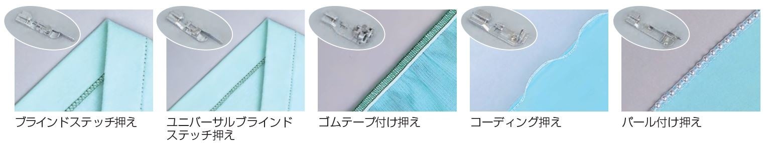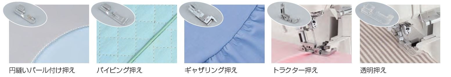 縫い品質の向上は、10種類の“押え”とクリアワイドテーブルをオプションで用意しましたので、縫いやすさ・縫い品質が向上し、様々な縫いが楽しめるようになります。