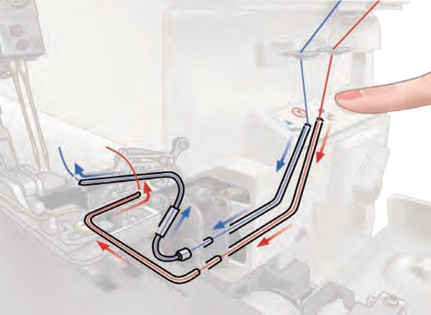 縫製前準備の糸掛けは、従来機「シュルル」のルーパー糸通し「イージースレッダー*」を踏襲し、ワンタッチで糸通しができる上、糸の種類への対応性を向上させ、ロックミシン特有の複雑で難しい糸通しを簡単にしました。