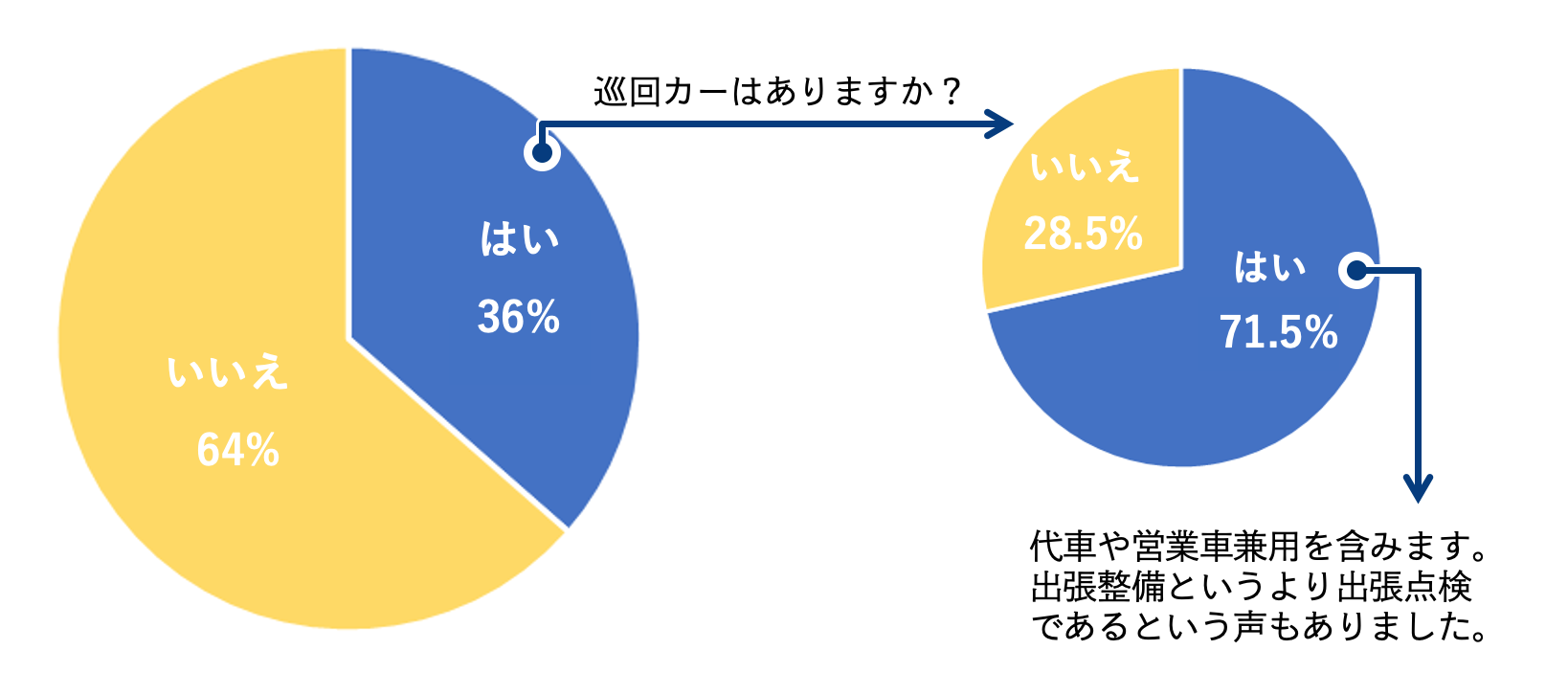 出張整備の需要は今後増加すると予想されていますが、対応工場は約36%にとどまりました。