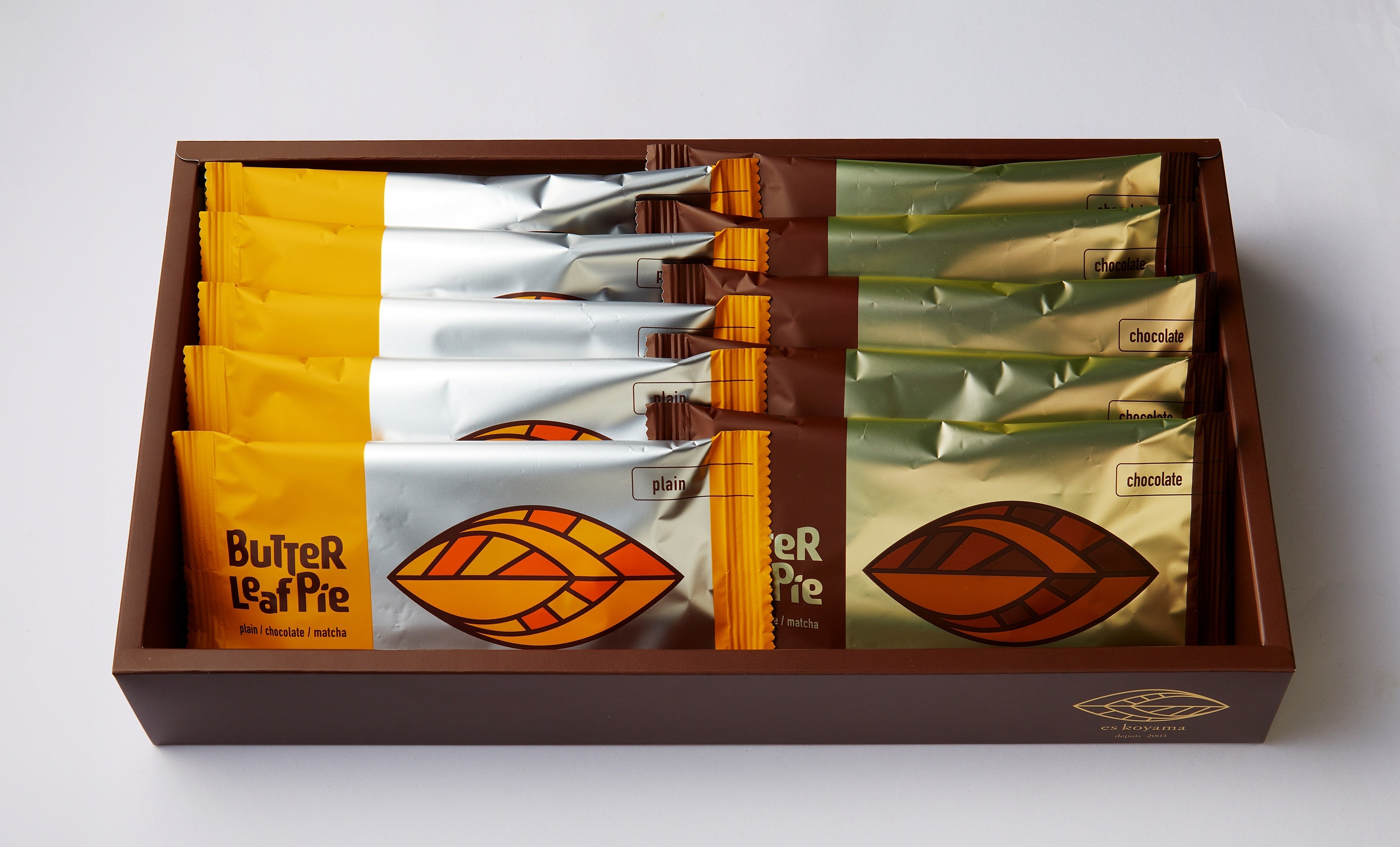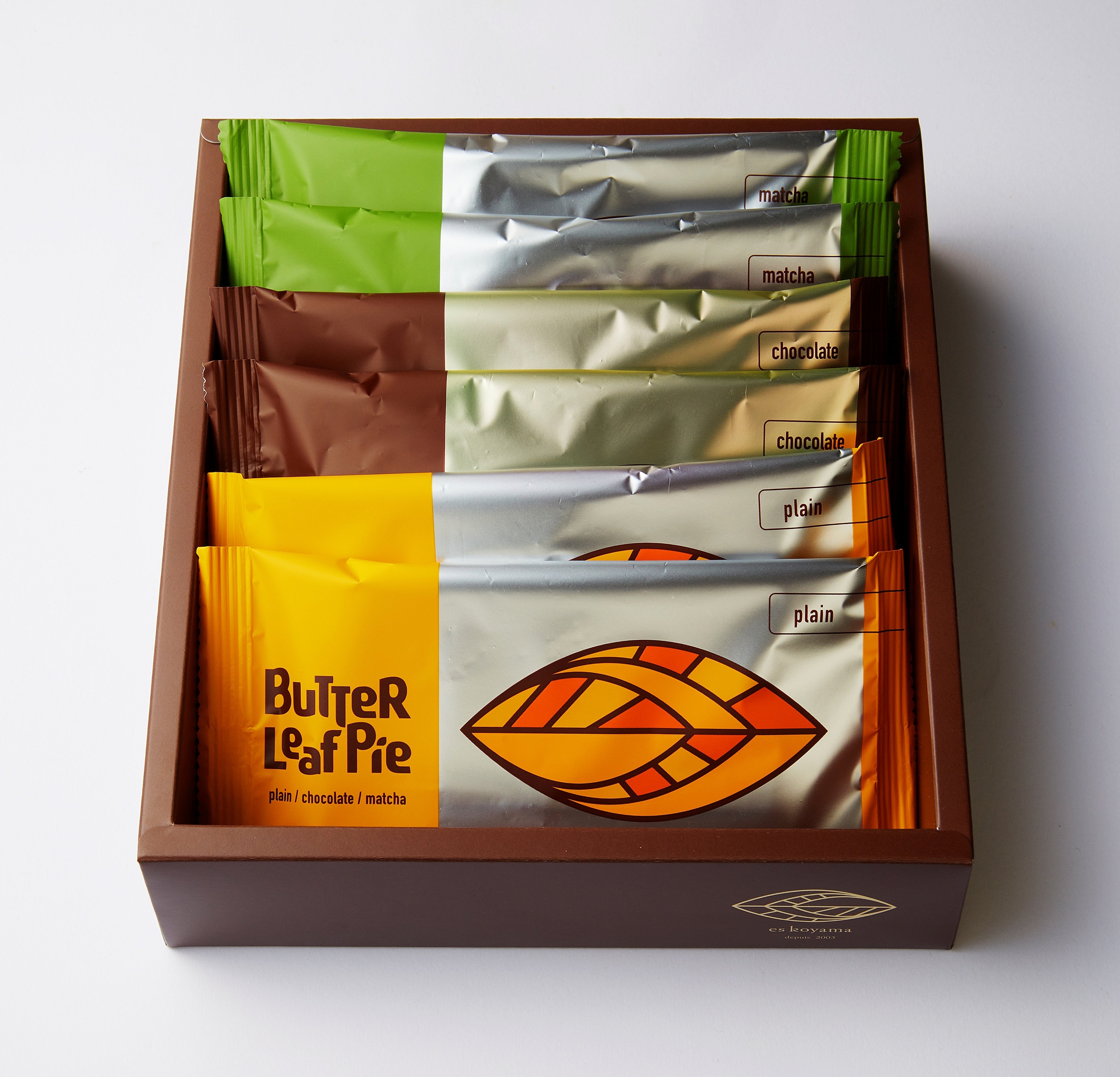 味わいはこのバターリーフパイの個性をストレートに感じられる「プレーン」、カカオの芳醇な香味が漂う「チョコレート」、京都府宇治市で栽培された極上の茶葉を使用した「抹茶」の3種類です。
