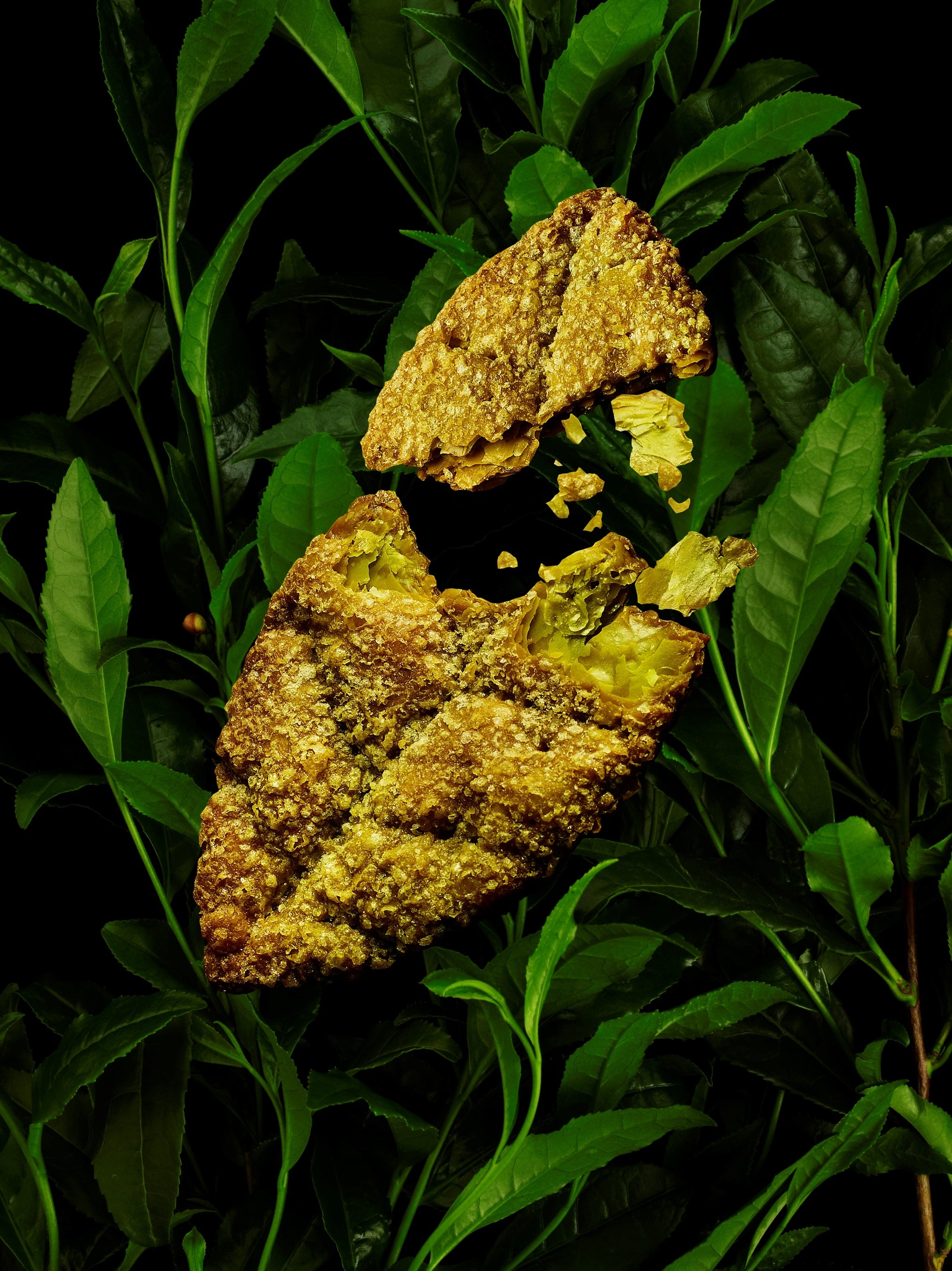 日本有数の茶処・京都府宇治市で栽培された初摘みの茶葉を使用。石臼で挽いたばかりの抹茶を大胆に練り込み、その極上の風味を閉じ込めました。バターと砂糖と結びつくことで引き立つ香り、苦味、旨味、コク......まるで抹茶そのものをいただいているかのような一枚を、五感を通してお楽しみください。