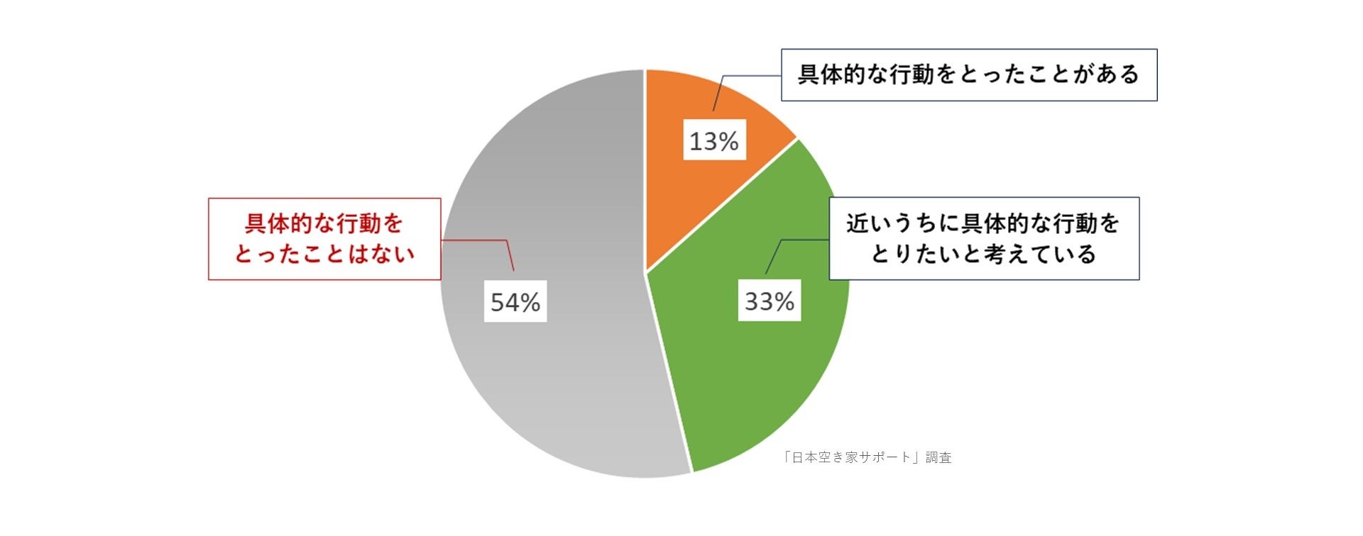 実家の将来について「話し合いを行っている」回答者の半数近くが具体的な行動を起こす傾向があることが判明。本調査における空き家予備軍は、概ね10年以内に空き家になる可能性のある方が対象であるが、空き家になるタイミングが近い回答者ほど話し合いを行い、行動する傾向が強いのではないかと推察される。いずれにしても家族間での話し合いが、空き家問題解決のための重要な起点となっていることは間違いないと考えられる。