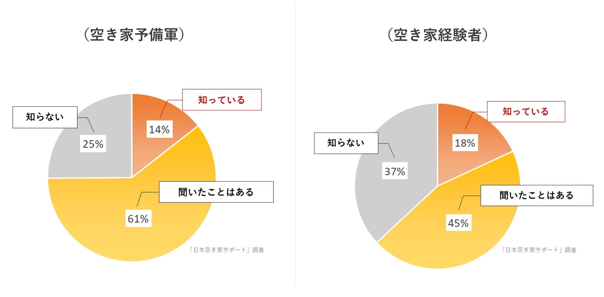 空き家予備軍、空き家経験者ともに空家対策特措法の具体的な内容まで把握している人は2割以下であり、啓蒙・広報活動等の強化が必要であると思われる。