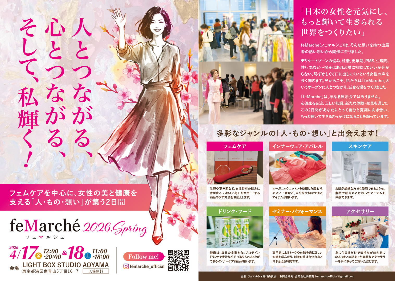 女性の美と健康を支える“人・もの・想い”が集うフェムケアイベント、第3回「feMarche 2026 Spring」開催!