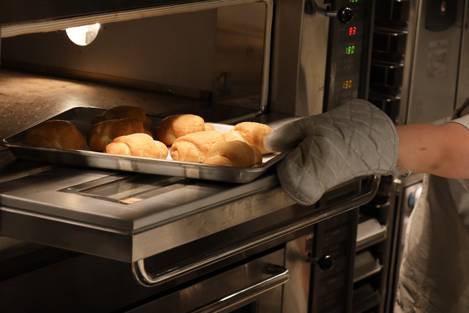 スパイスがたっぷり入ったカレーパンや、上品で控えめな甘さのクリームパン、サンドの具材は全てオリジナル。ここでしか食べれないOUI.(ウイ)だけのパンを職人が追求し、店内で職人たちが一つ一つ丁寧に仕上げています。イートインならではの楽しみ方を提案するために提供直前にリベイクや最後の仕上げをして、出来立てをご提供いたします。