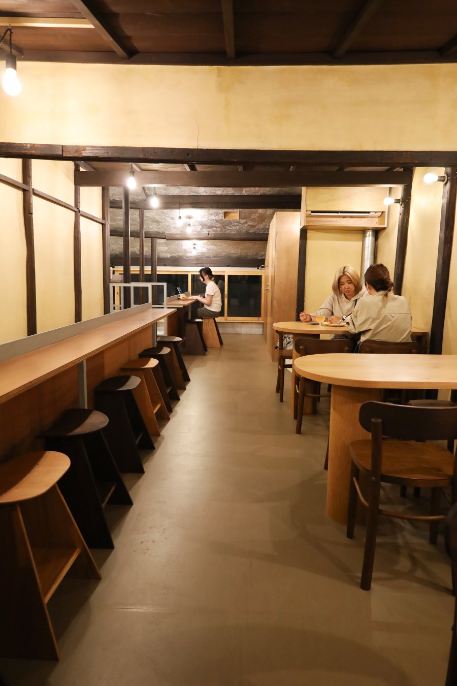 のびやかに広がるカフェスペースは、京町屋の古くからの時間を積み重ねた素材を活かし、古いものの良さを感じる温かみのある内装です。