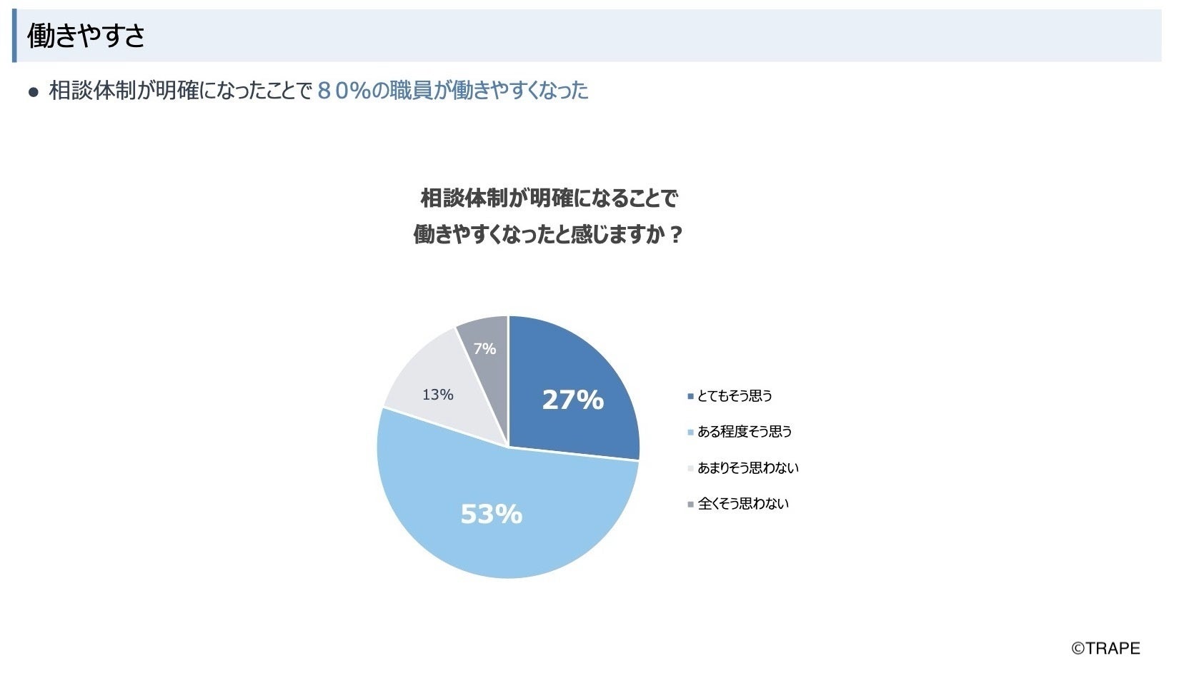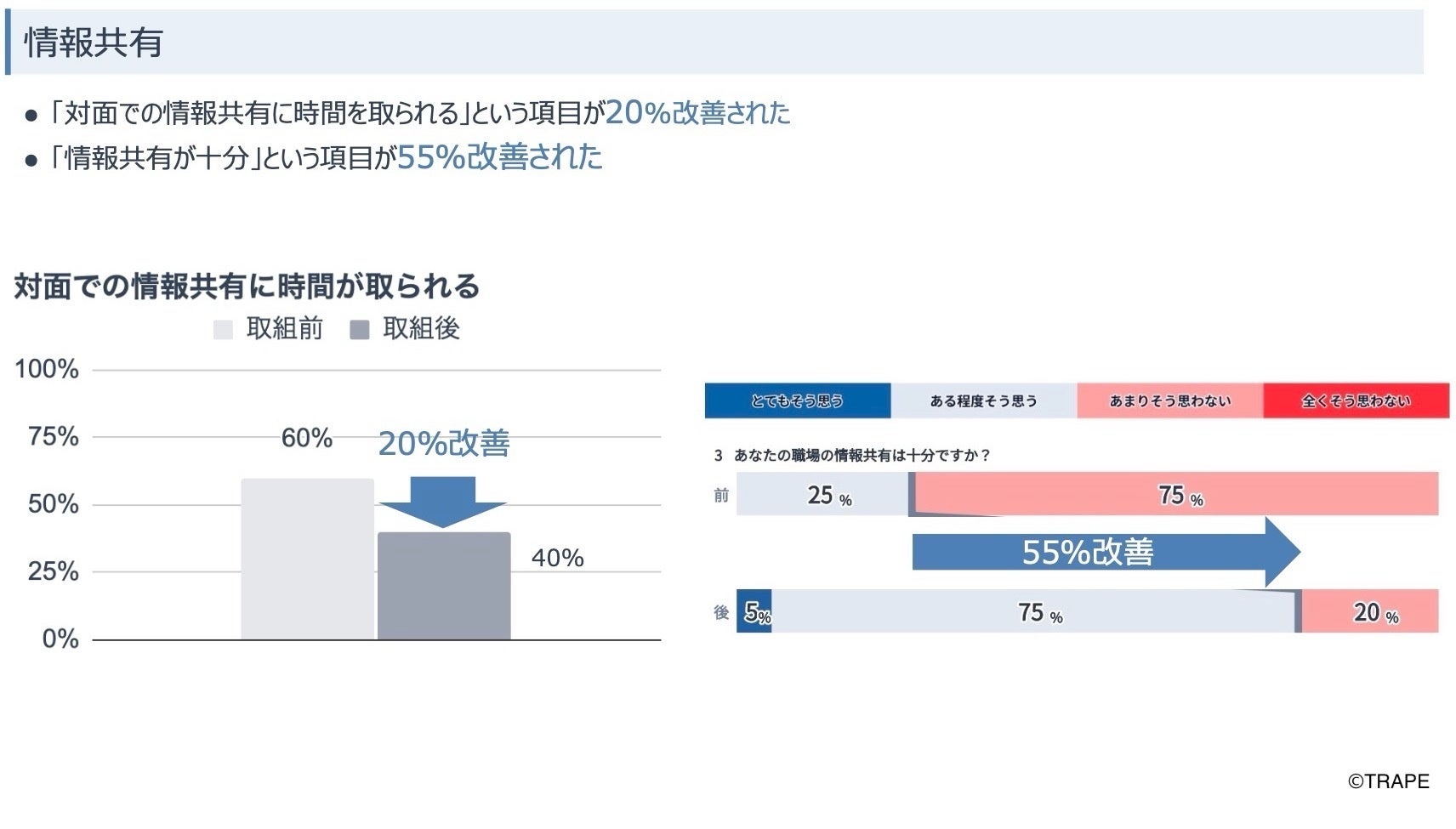 今回取り組んだ内容については以前から課題意識は強く持っていたものの、忙しさを理由に着手できていなかった部分であるため、第三者の力(TRAPE による伴走支援)を借りたことをきっかけに取り組むことができてよかった
