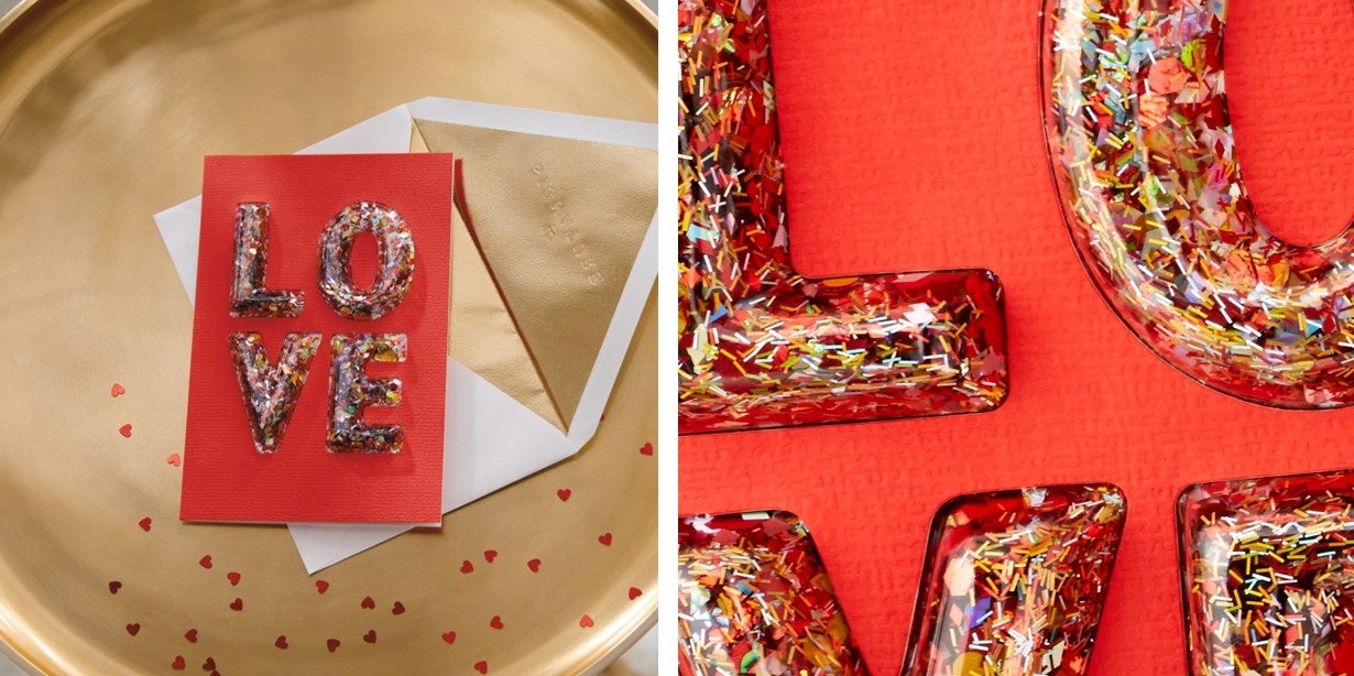 溢れる愛は推しにもぴったり? 大きな「LOVE」の文字に紙吹雪をたっぷり詰め込んだカードは存在感抜群!