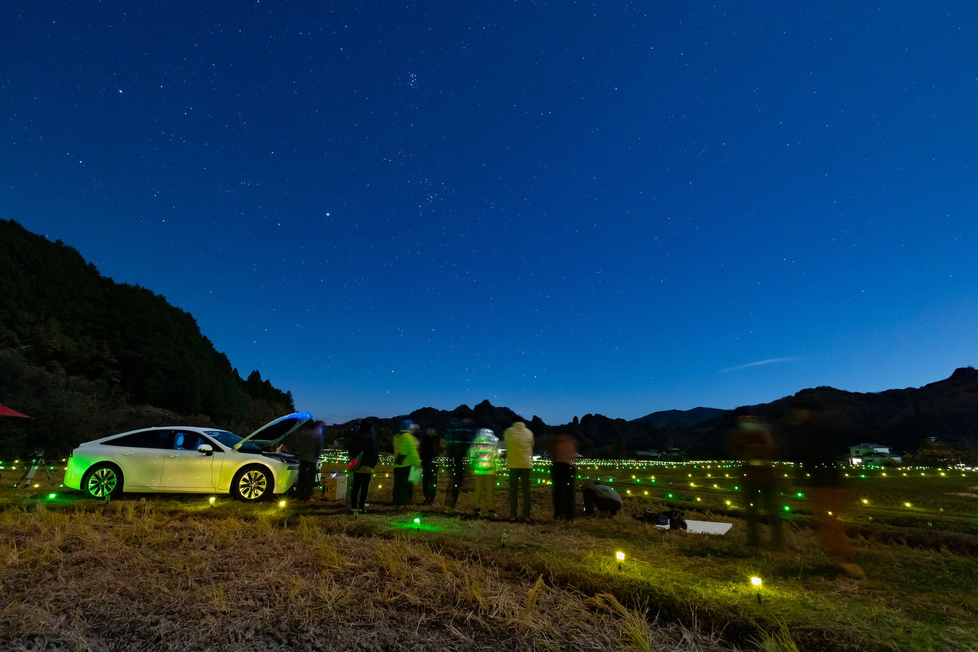 のどかな荘園風景の中で、自然の音を感じながら、綺麗なお月様と星空をゆったり観察。田染荘では「間戸の岩」と呼ばれる岩峰があり、夜になると岩峰の間からお月様が昇ってきます。この間戸の岩と月の景色は、歌に詠むなどして、昔の人も愛でていたといいます。