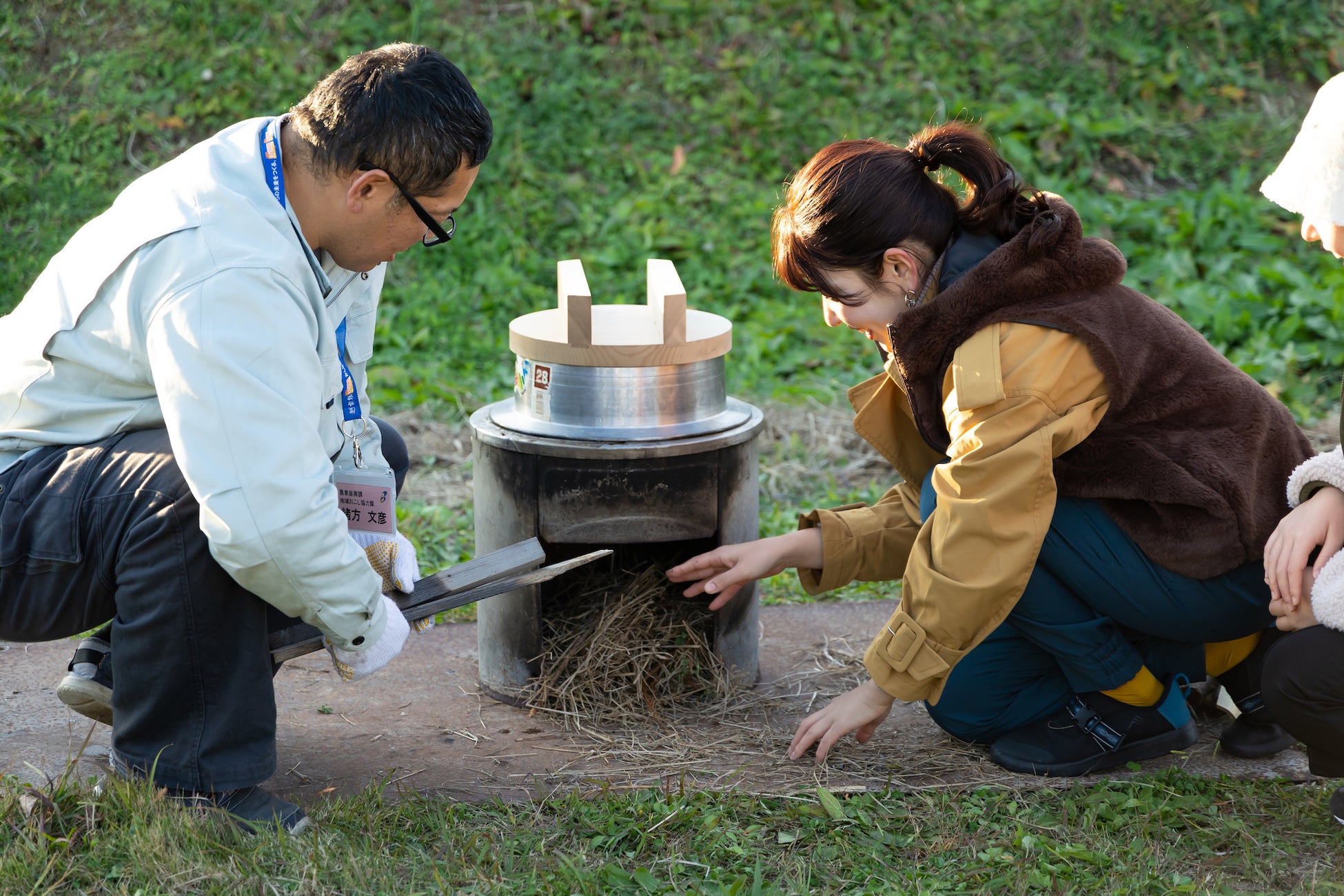 「荘園米」のかまど炊き体験で、炊き立てのお米を堪能します。