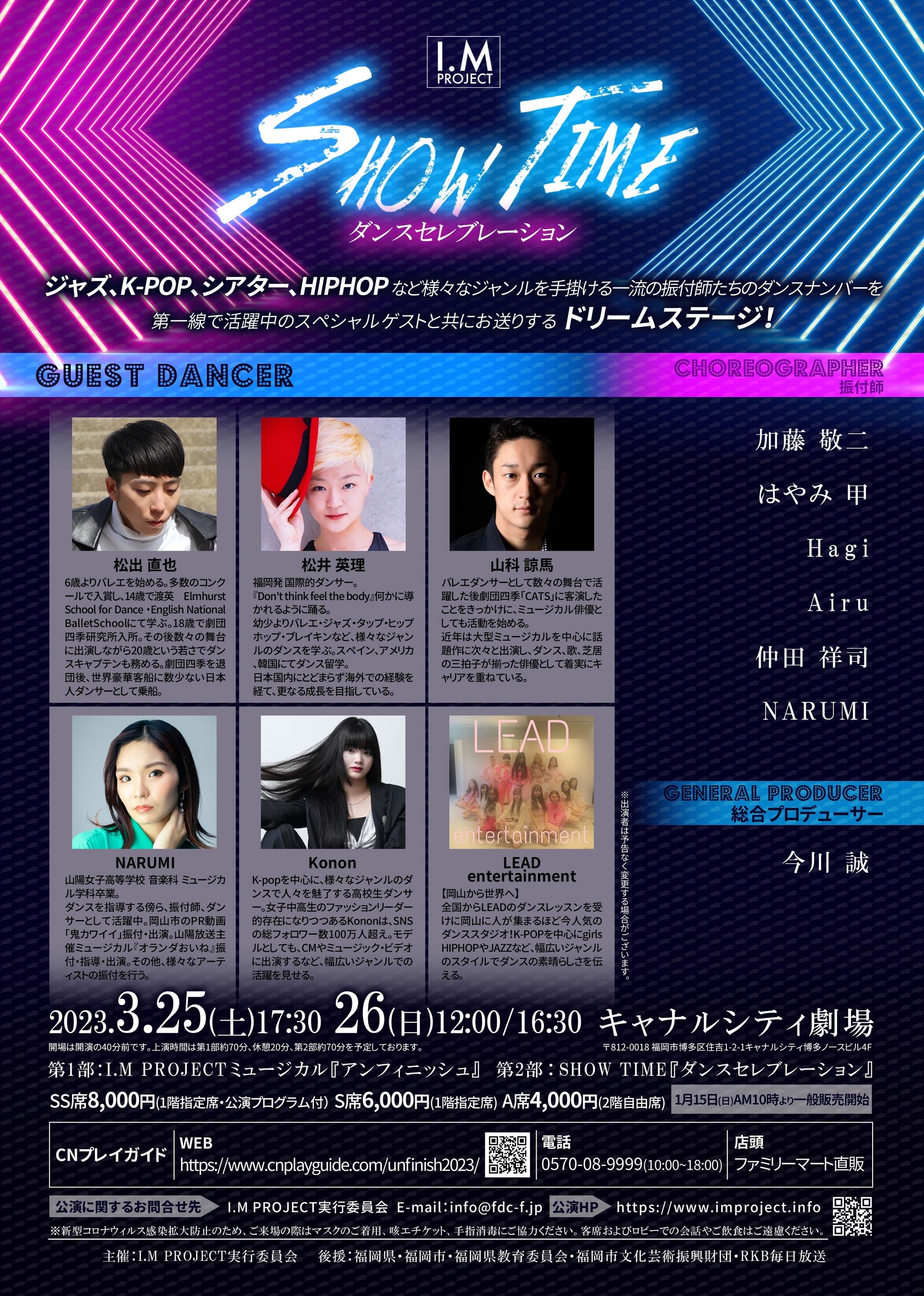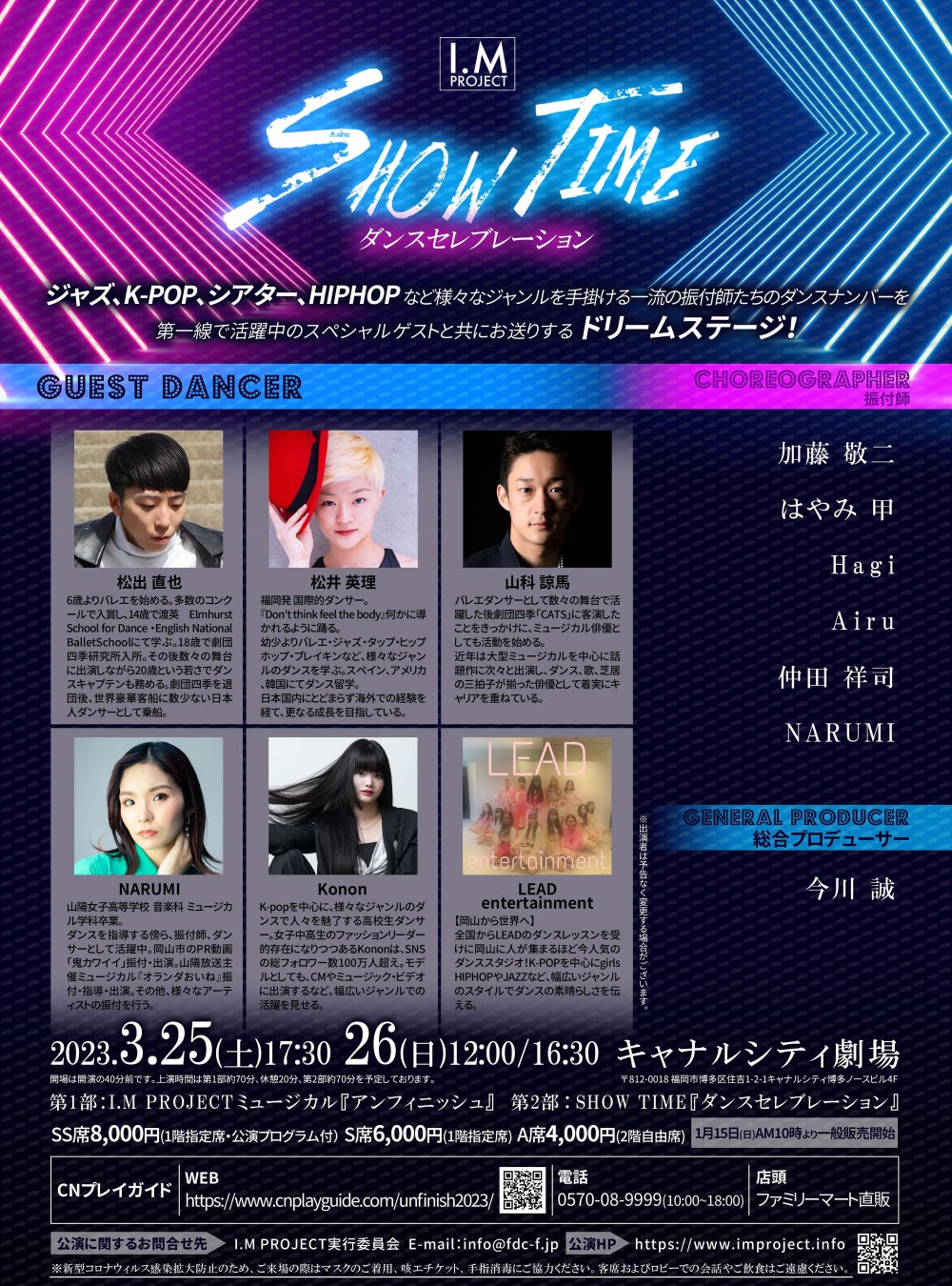 キャナルシティ劇場(福岡市博多区)にて、今川誠 総合プロデュース、ミュージカル「アンフィニッシュ」&SHOW TIME「ダンスセレブレーション」を開催します。
