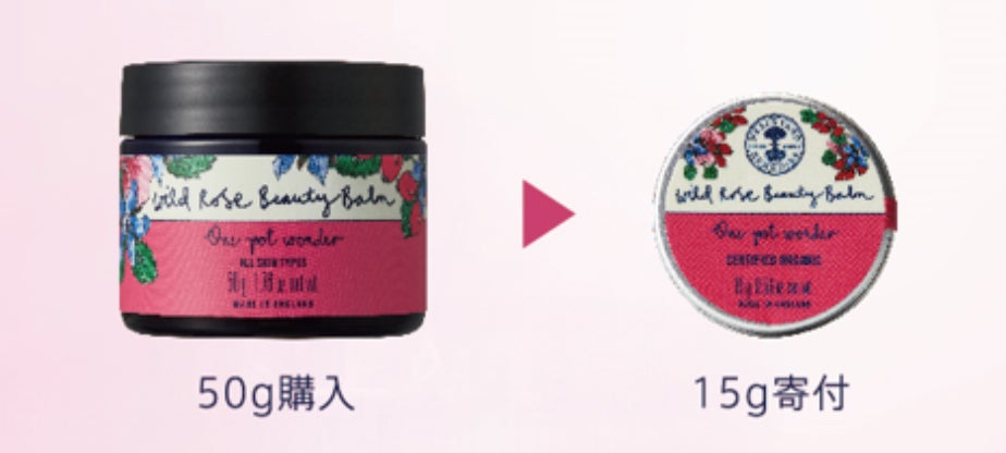 本キャンペーンでは、期間中にニールズヤード直営店および公式オンラインショップにて「ワイルドローズ ビューティバーム 50g」をご購入いただくと、同製品の15gサイズを、KMSを通じて全国の小児病棟で入院中のお子さんに寄り添うご家族へお届けいたします。